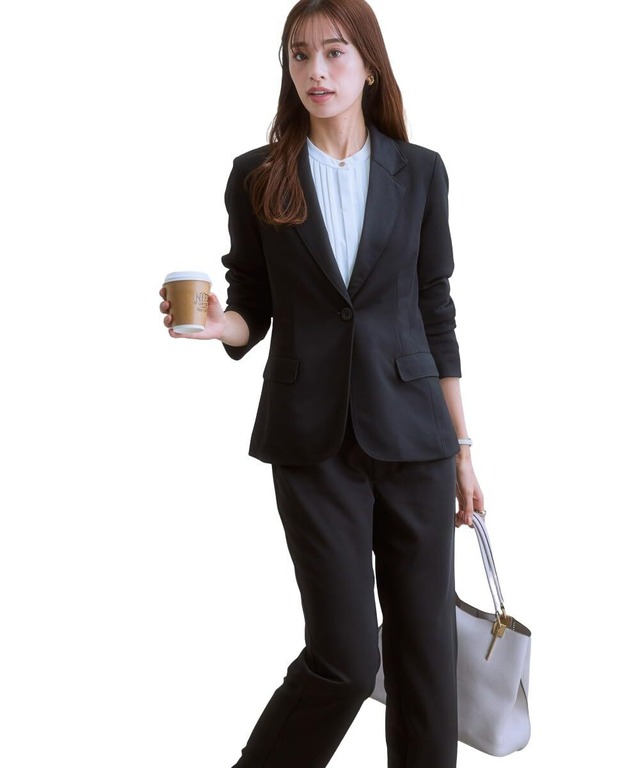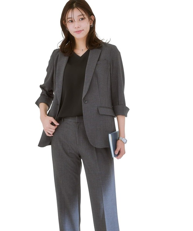 【2022最新】[ニッセン] パンツスーツ 【レディーススーツ】 パンツスーツ(7分袖テーラードジャケット+ストレートパンツ)(タテヨコストレッチ素材) 大きいサイズ有