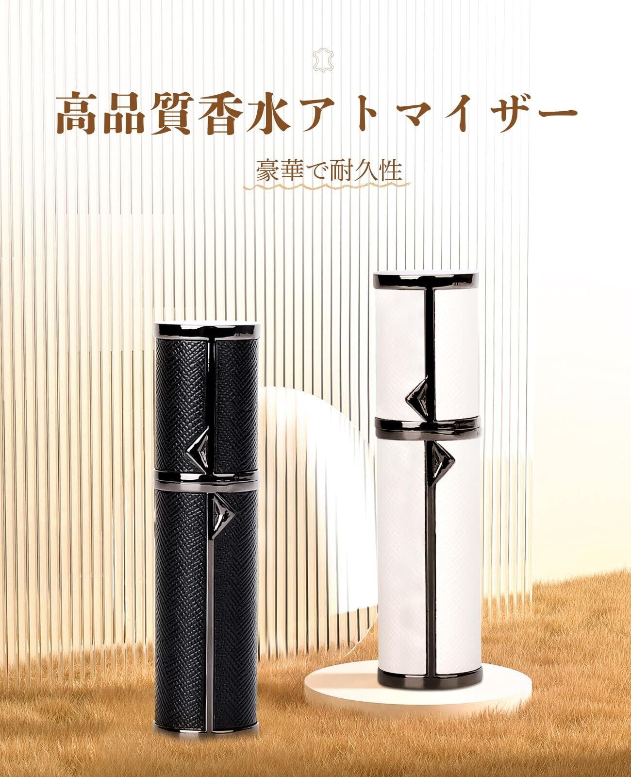 AlxMuNao アトマイザー 香水【5ml・ワンタッチ補充・携帯用】プレミアムレザー仕様 底部充填 詰め替え簡単 漏れない 持ち運び便利 コンパクト 小分けボトル 旅行 デート 仕事 男女兼用 (黒-黒)