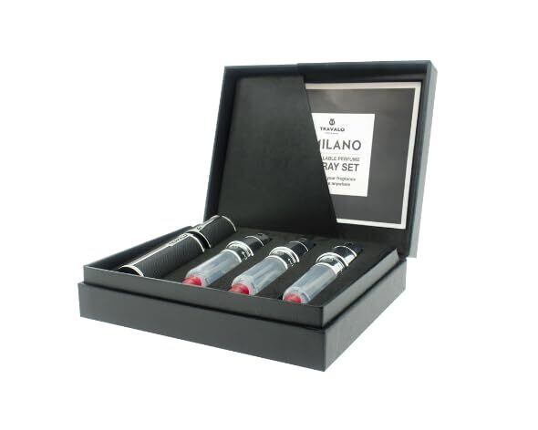【公式】TRAVALO (トラヴァーロ) アトマイザー ミラノセット インナーボトル2本付き 香水 詰め替え簡単 漏れない 持ち運び 旅行 香水ボトル 5ml ダイレクトチャージ (ブラック)
