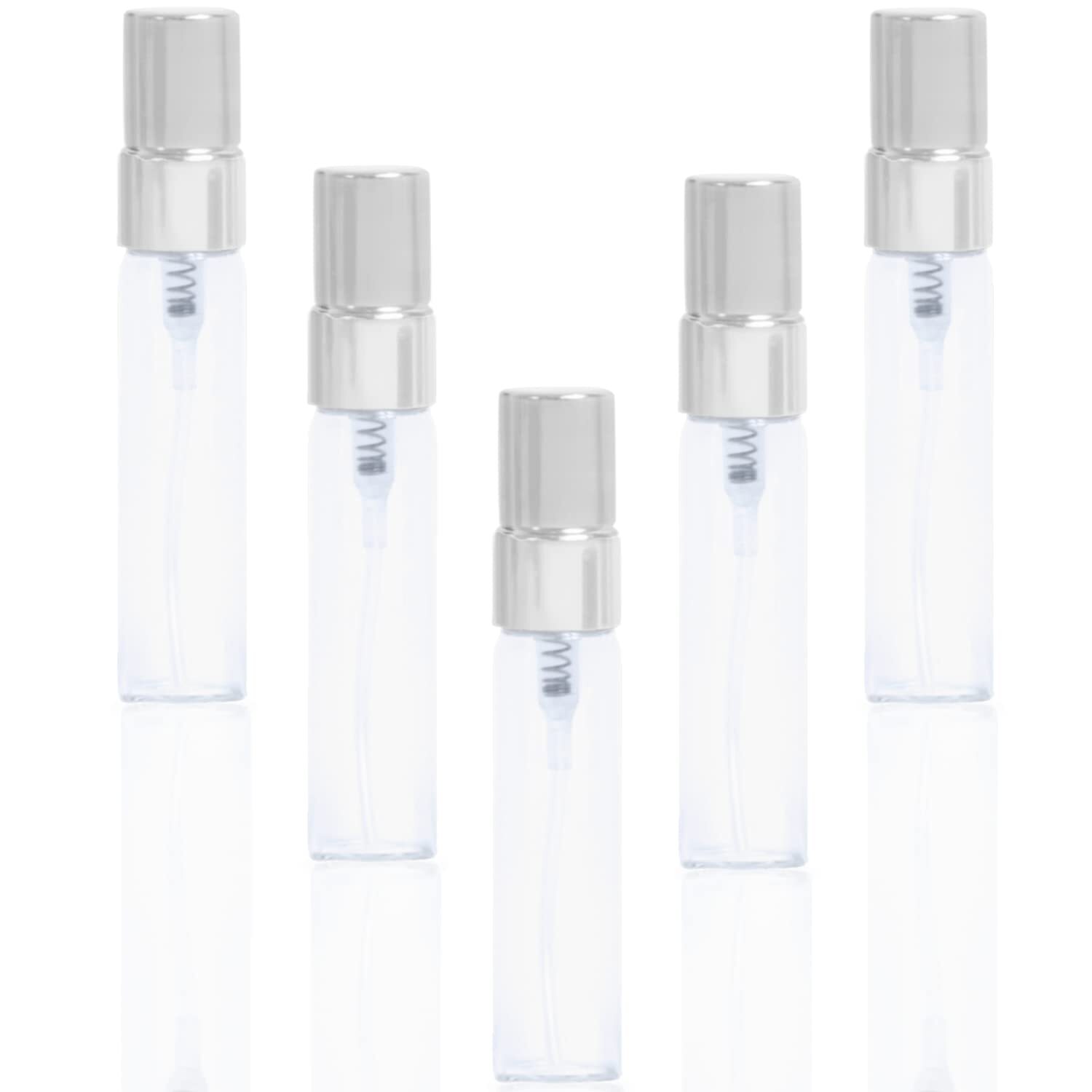 [Kai La Nalu] アトマイザー 香水 詰め替えボトル 3ml 香水入れ 携帯用 小分け容器 ガラス製 5個セット (シルバー)