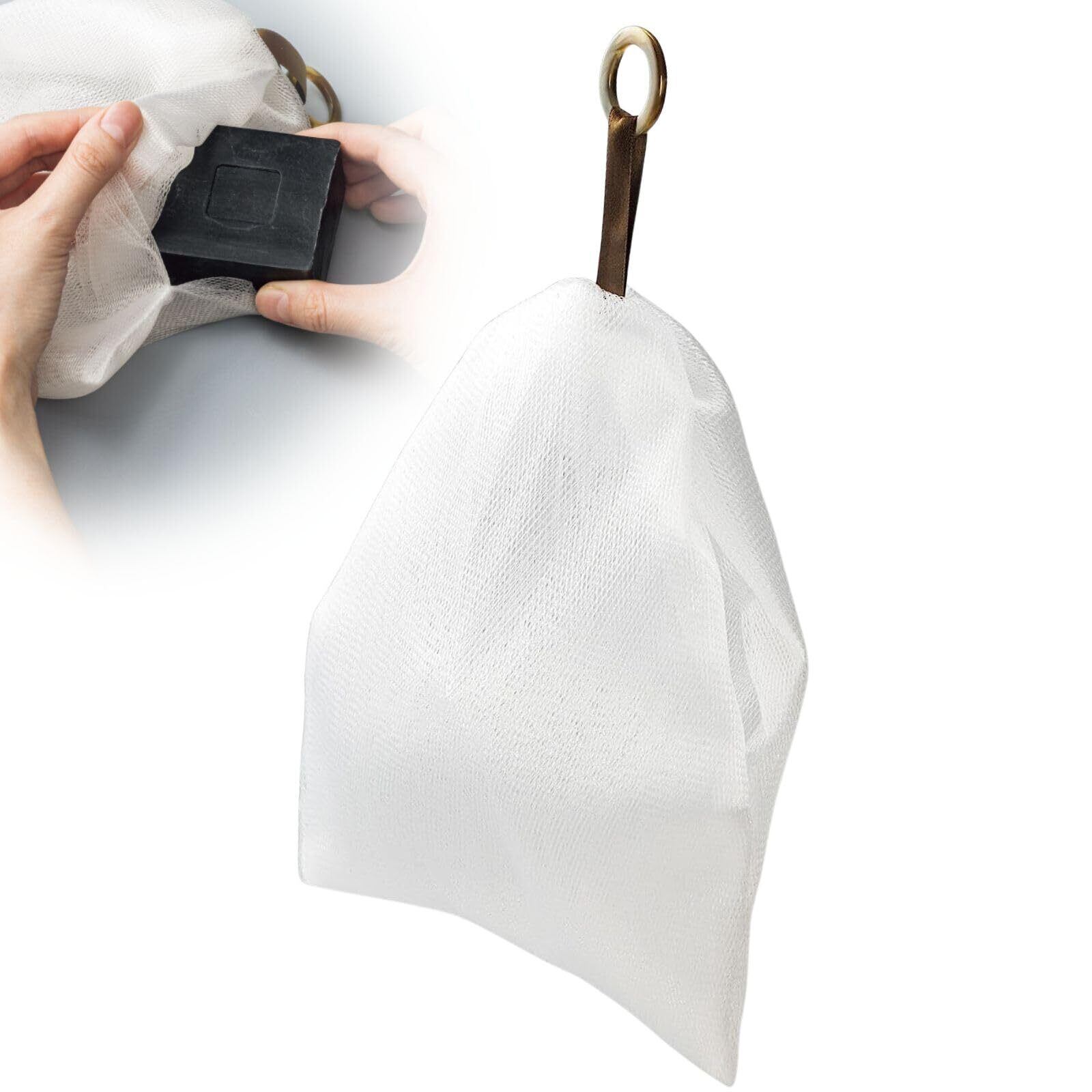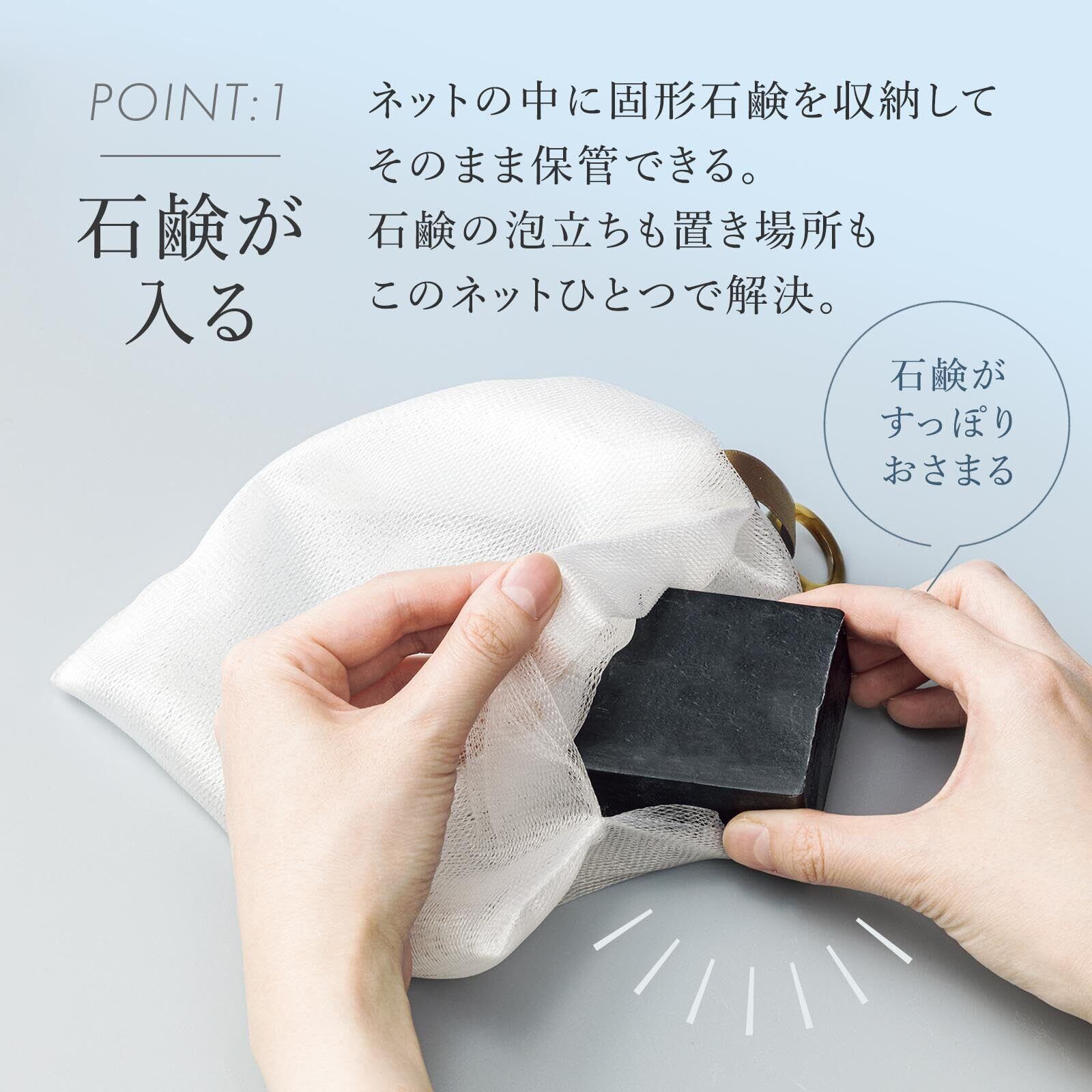 固形石鹸を収納してそのまま保管できる泡立てネット!