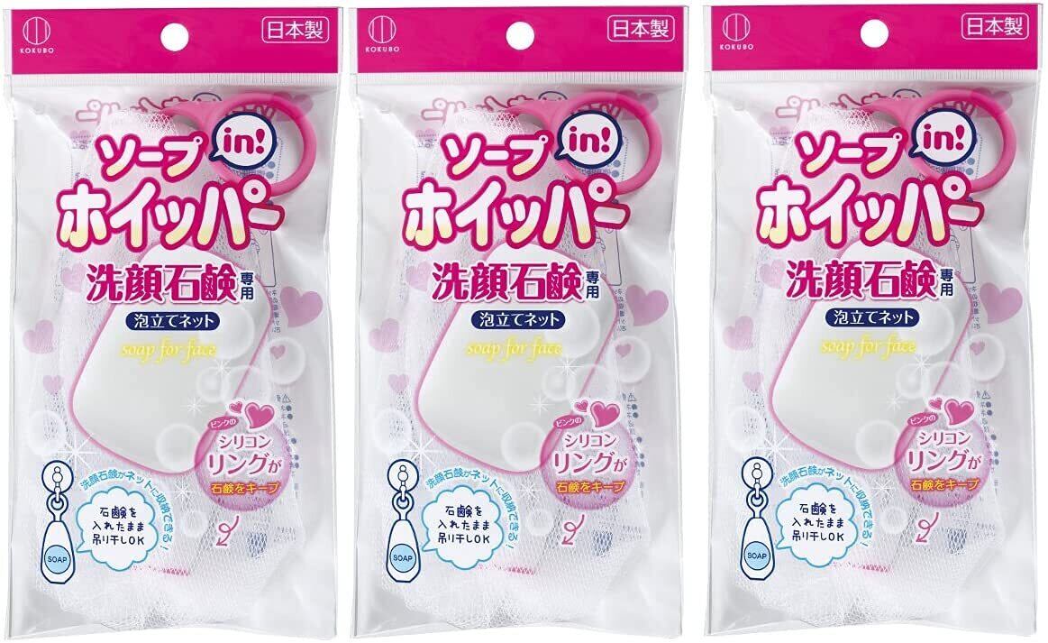 小久保工業所 ソープインホイッパー (3個セット) [固形石鹸用泡立てネット](収納用リング付き)