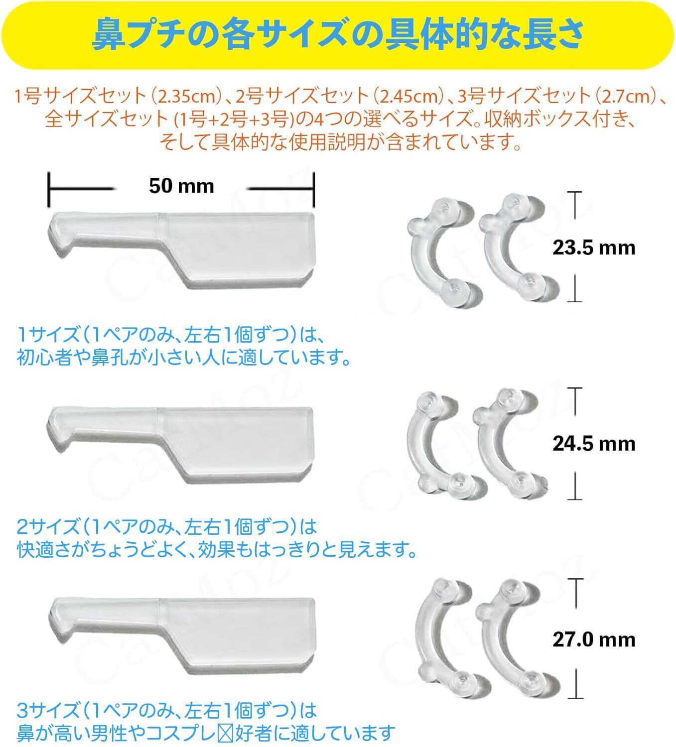 CatMoz 透明鼻プチ 3Dインビジブルで目立たない 医用シリコン製 違和感なく鼻を高く見せる 自然な仕上がり 3サイズ展開 再利用可能 3号サイズセット(1ペア)