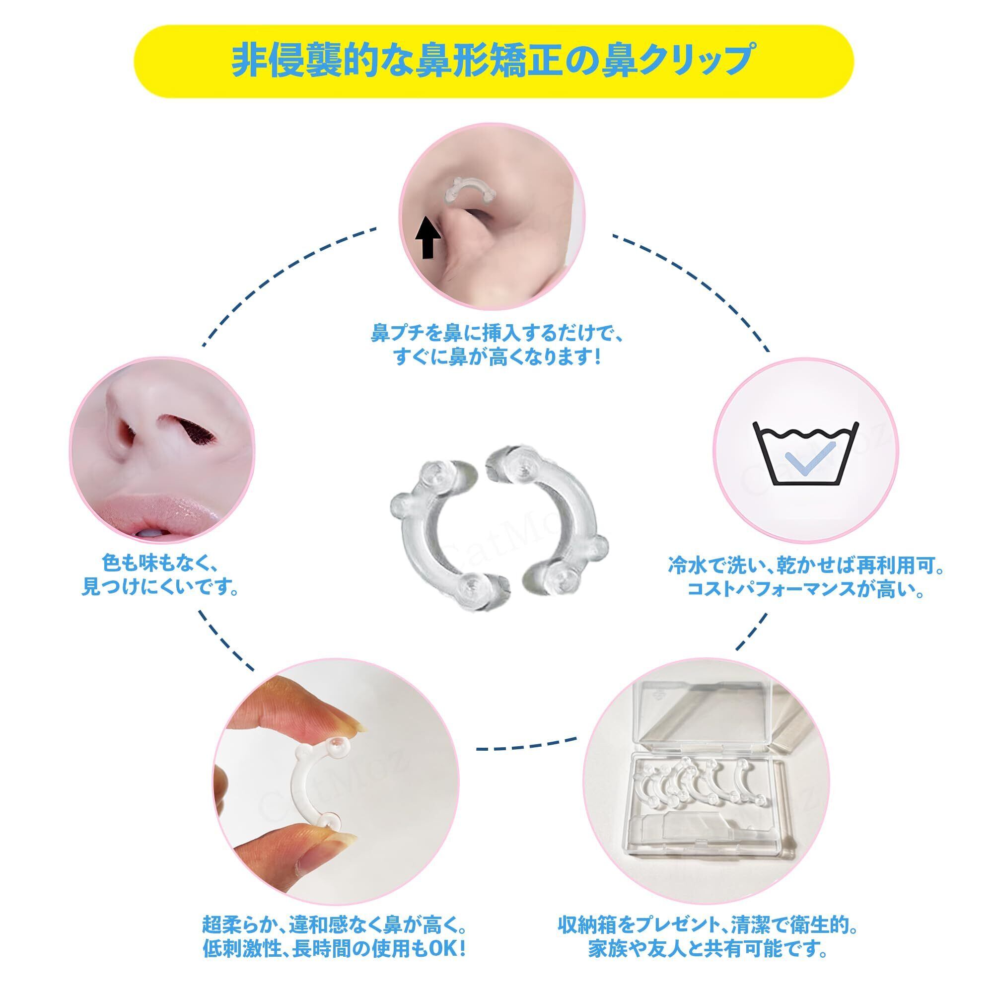 【透明で目立たない鼻プチで、ナチュラルな美鼻を演出】「鼻プチ」をお探しの方に最適!CatMozの透明3Dインビジブル鼻プチは、自然に鼻を高く見せる医療用シリコン製。目立たない・痛くない・違和感なしを実現し、初めての方にも安心してご使用いただけます。再利用可能でコスパも◎。