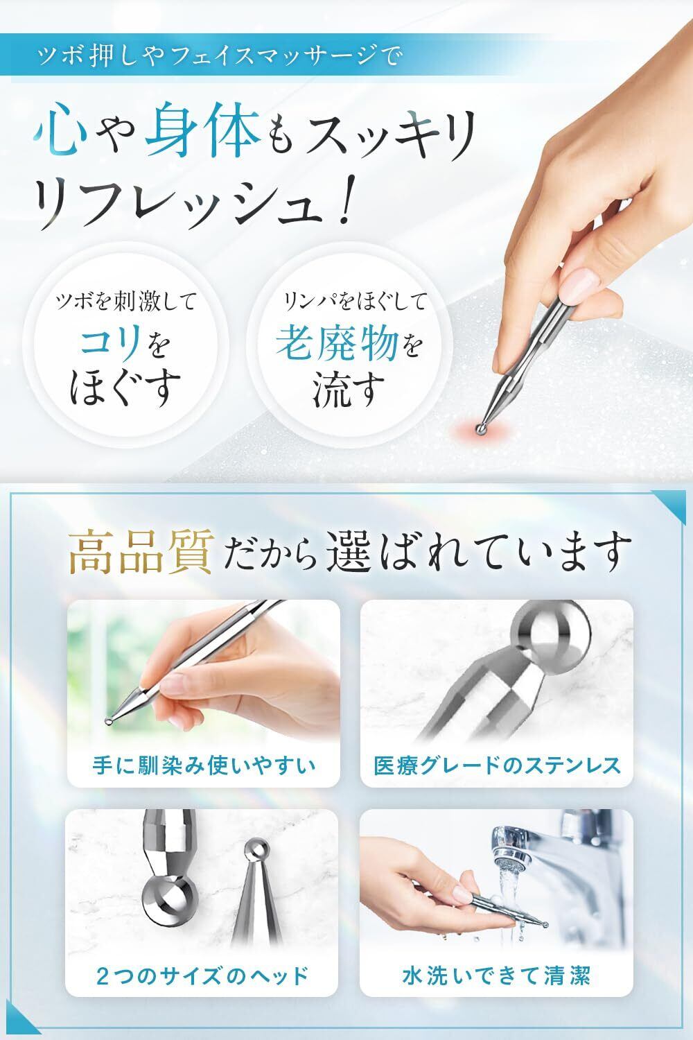 フェイスマッサージと全身のツボ押しに最適なアイテムです。イラスト入りの分かりやすいツボ押しガイドと手と足のツボ地図が付属しているので初心者でもすぐに始められます。