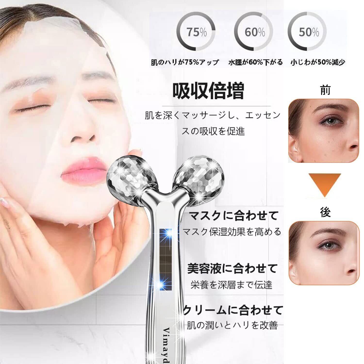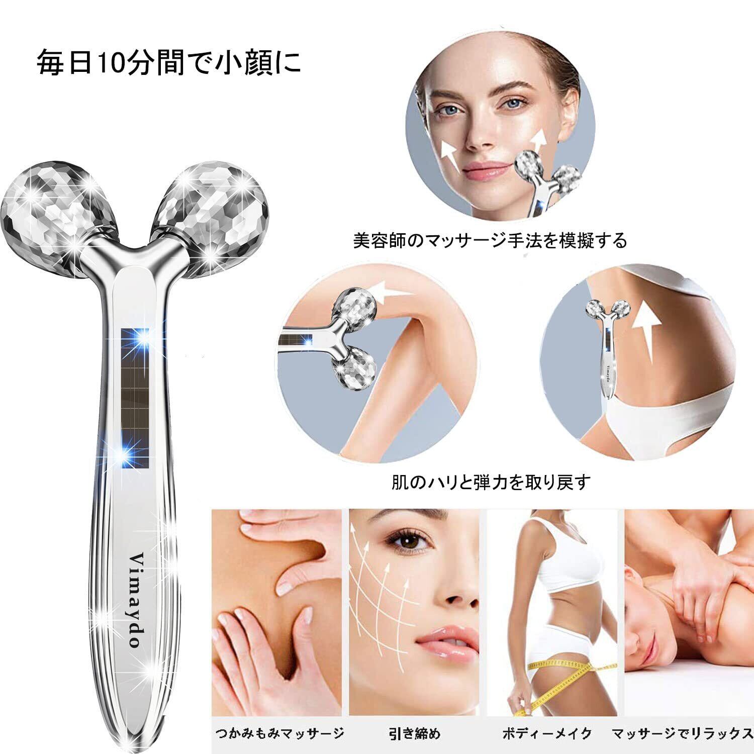 【多機能な美顔ローラー】理想の小顔と美肌を目指す。360度全方位立体マッサージ手法を再現します。ローラーの形状と角度を工夫したデザインにより、角度に影響されずローリングすることができます。どの部位でもマッサージすることができ、揉み、引き上げ、抓みの感覚を味わうことができます。 小顔るだけでなく、気になるボディのお肉もつまみあげ、スリムなネックと細い腕とウエストを実現できます。
