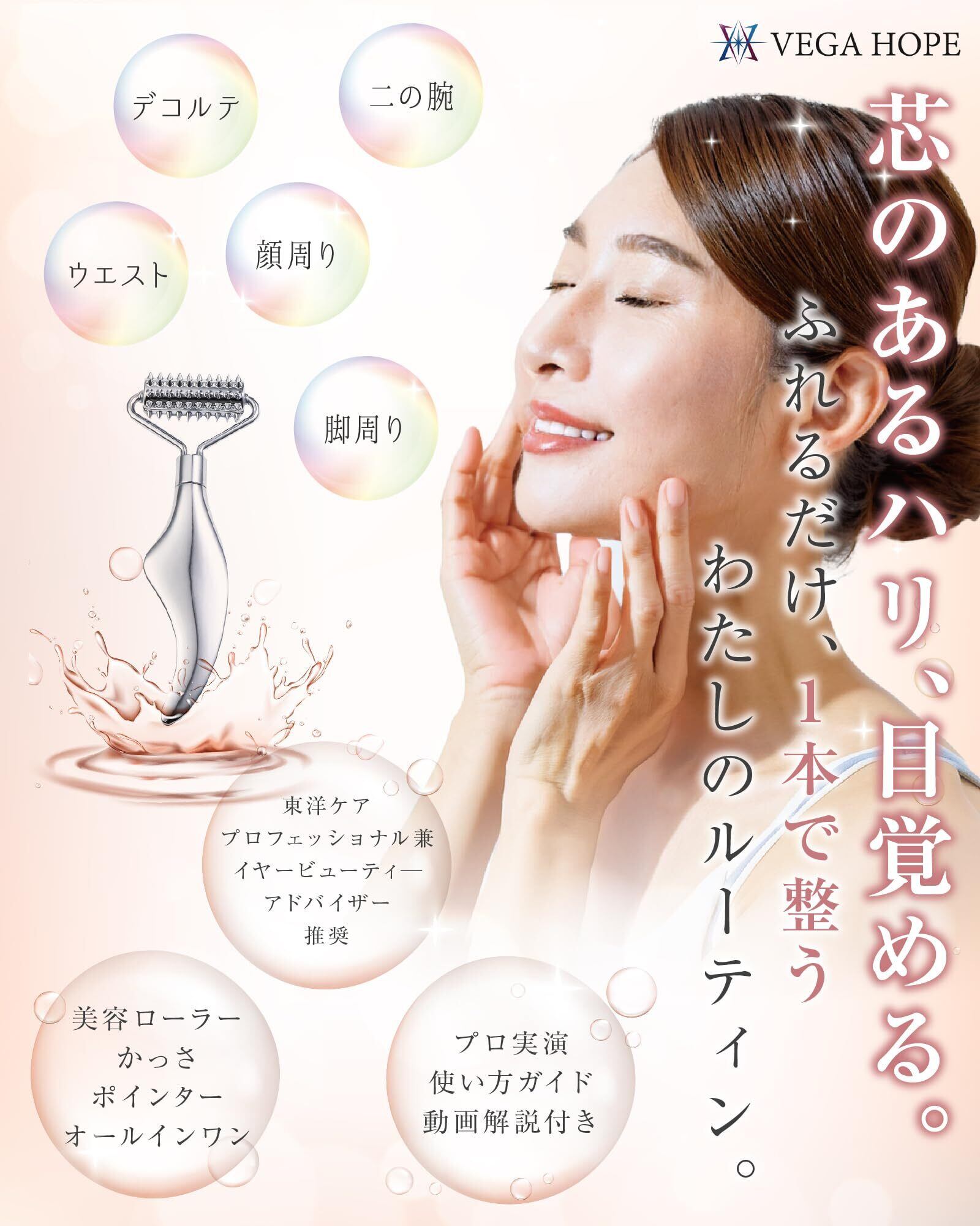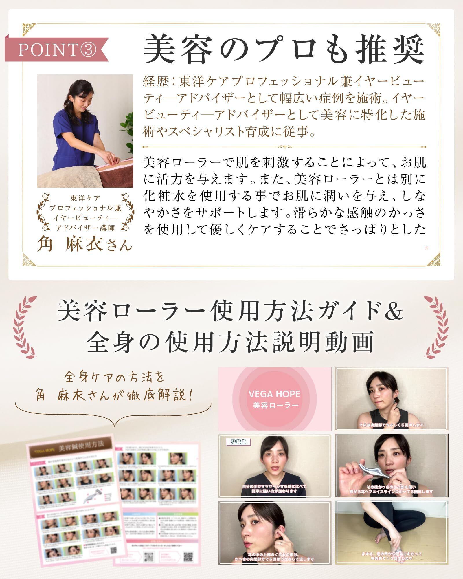 VEGA HOPE 美顔ローラー 美容鍼灸師監修 1台3役(ローラー・かっさ・ツボ押し) 自宅でエイジングケア 動画解説付 BYB1