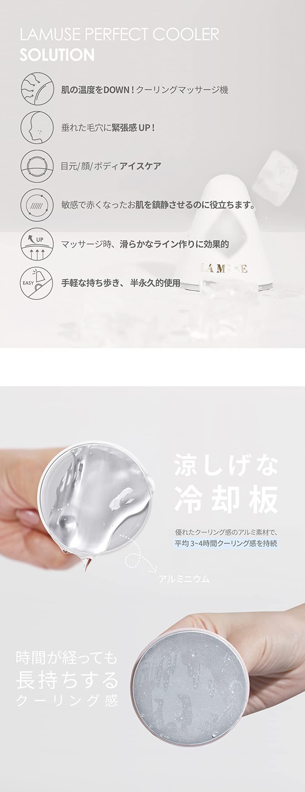 LAMUSE(ラミューズ) パーフェクトクーラー フェイスローラー【毛穴ケア】 顔クーリング ボディアイスケア スキンマッサージ ホームビューティー 韓国コスメ COOLER ホワイト