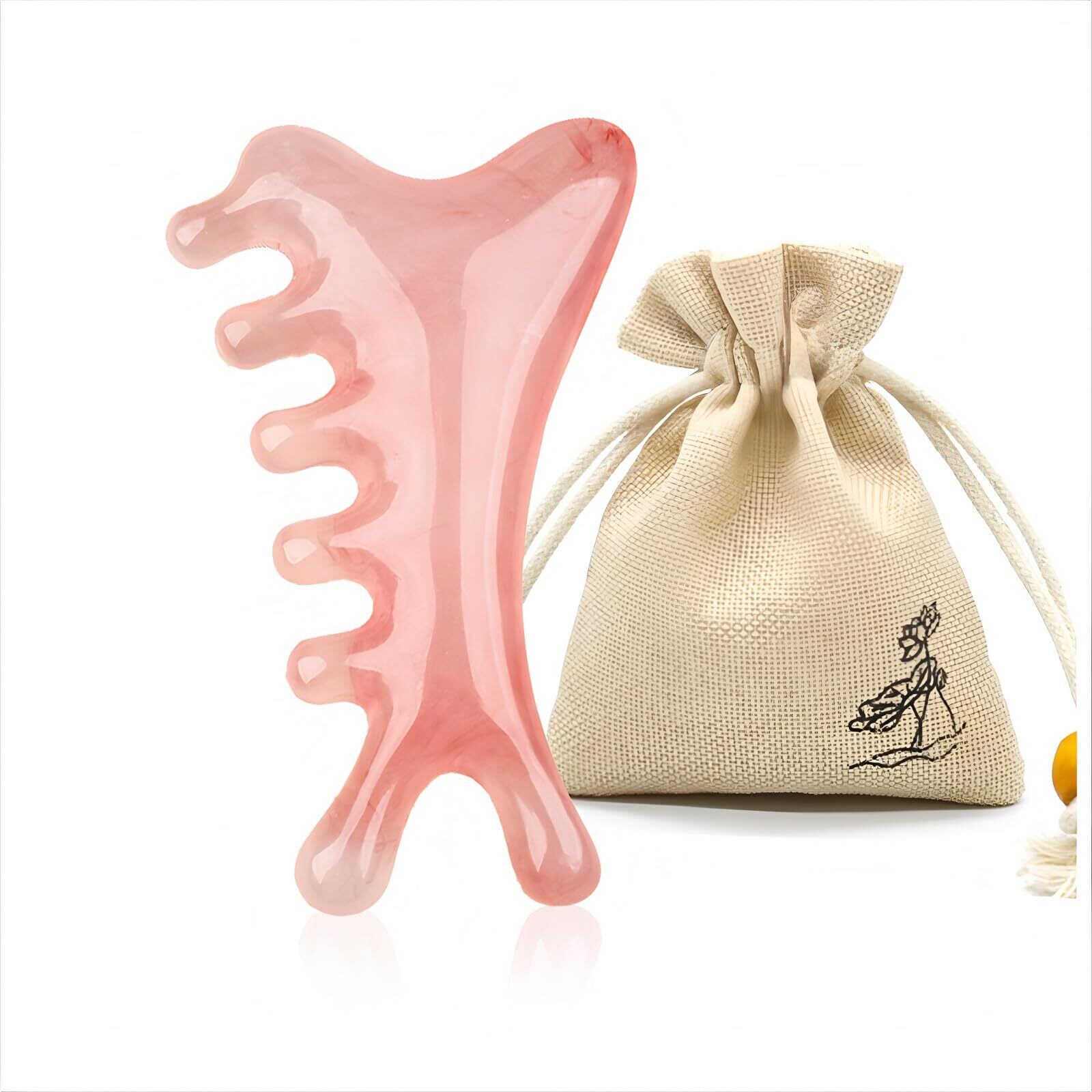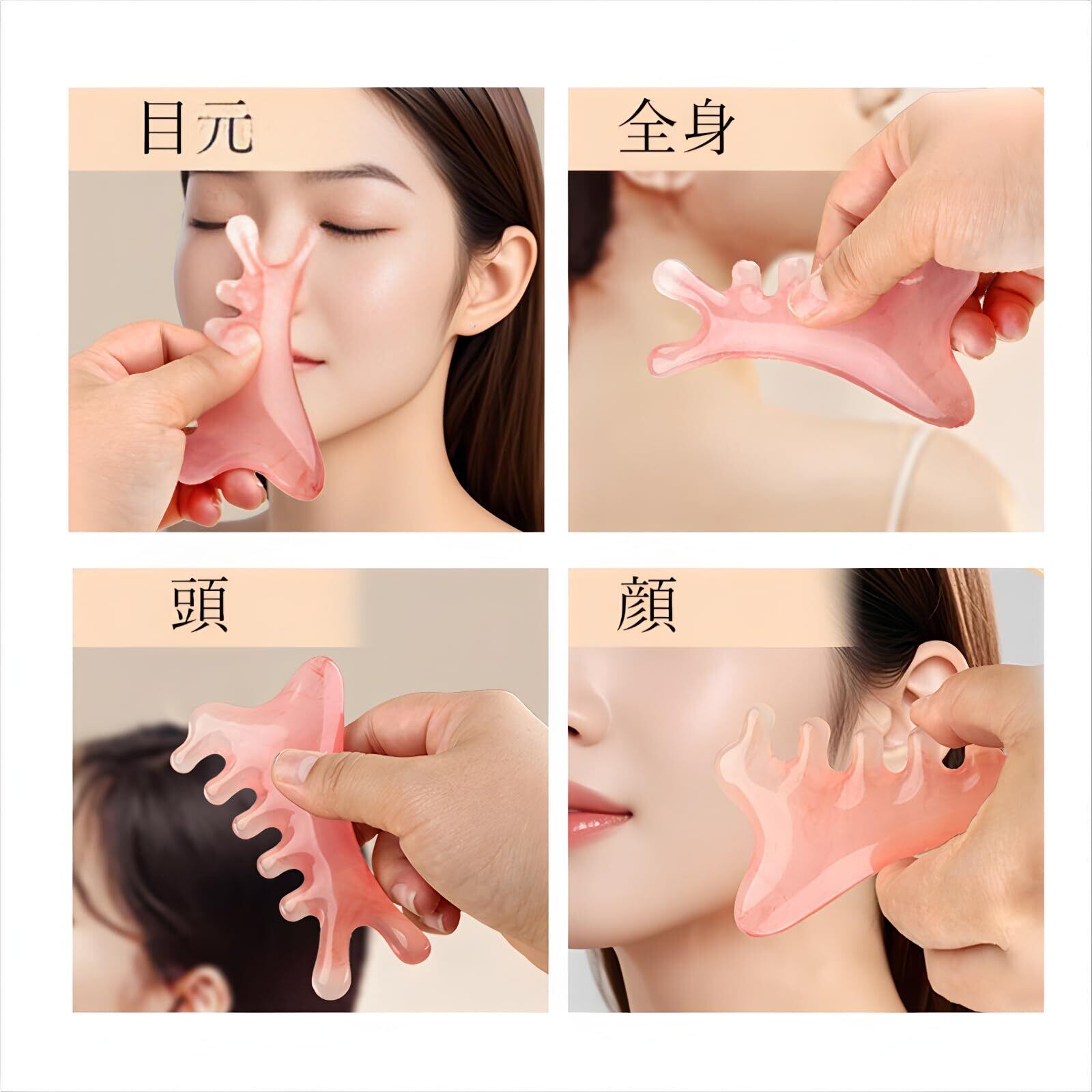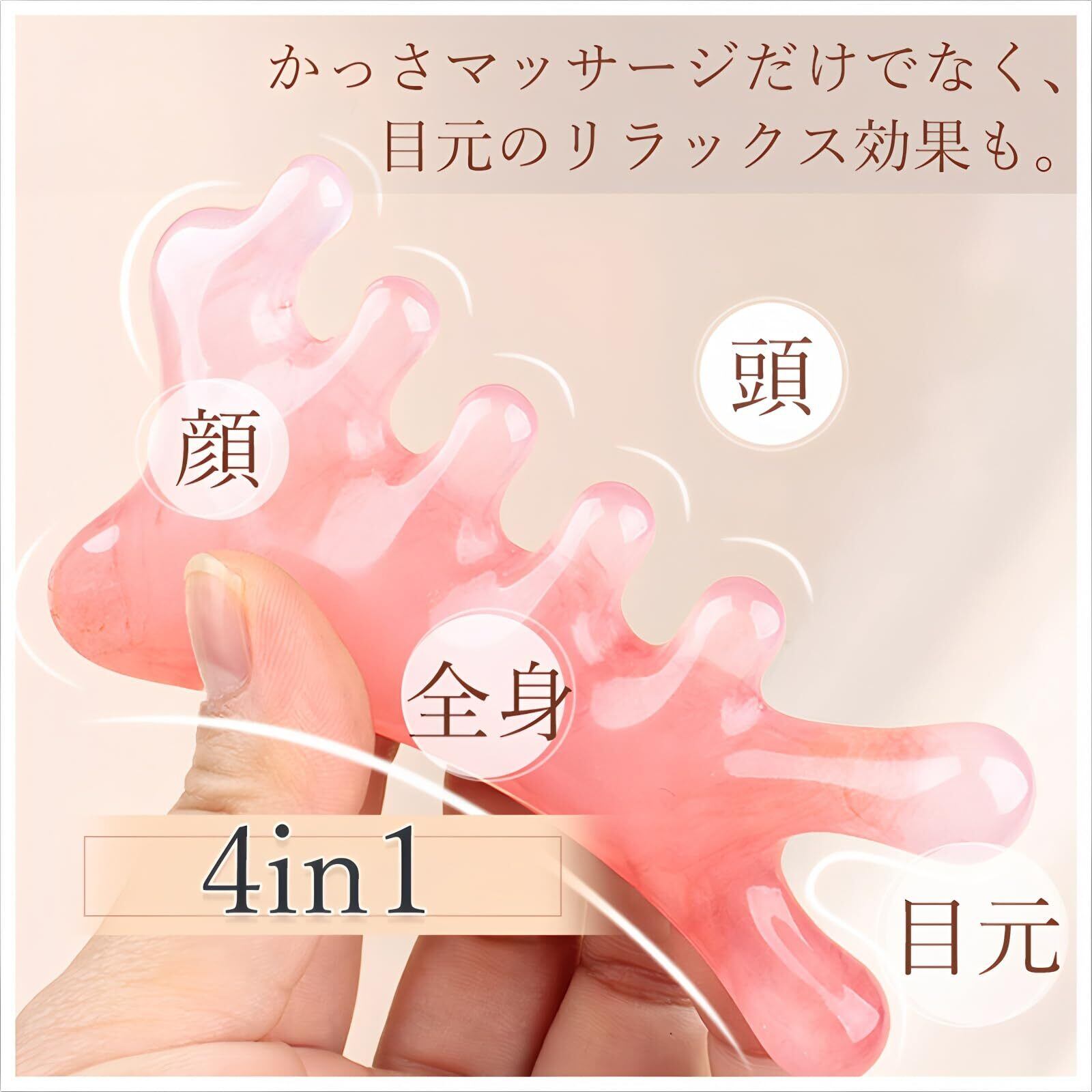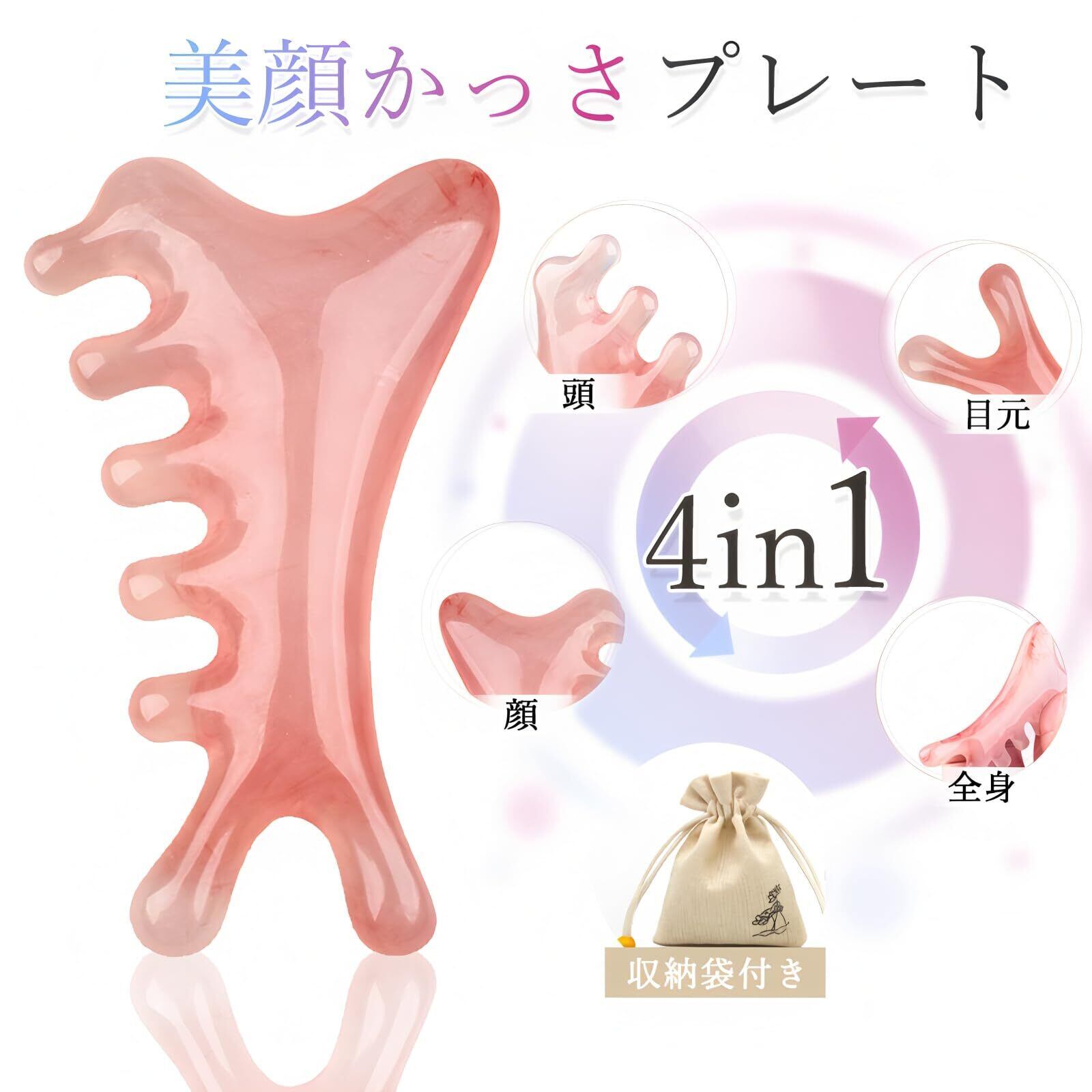 ROKUA かっさプレート 4in1進化系かっさマッサージ|顔・頭皮・首・肩などをやさしくケア|ツボ押し・すっきりフェイスライン・心地よい刺激でリラックス|檀木素材&樹脂素材の2タイプ|専用巾着付き・ギフトにも◎|日本国内発送 (ピンク)