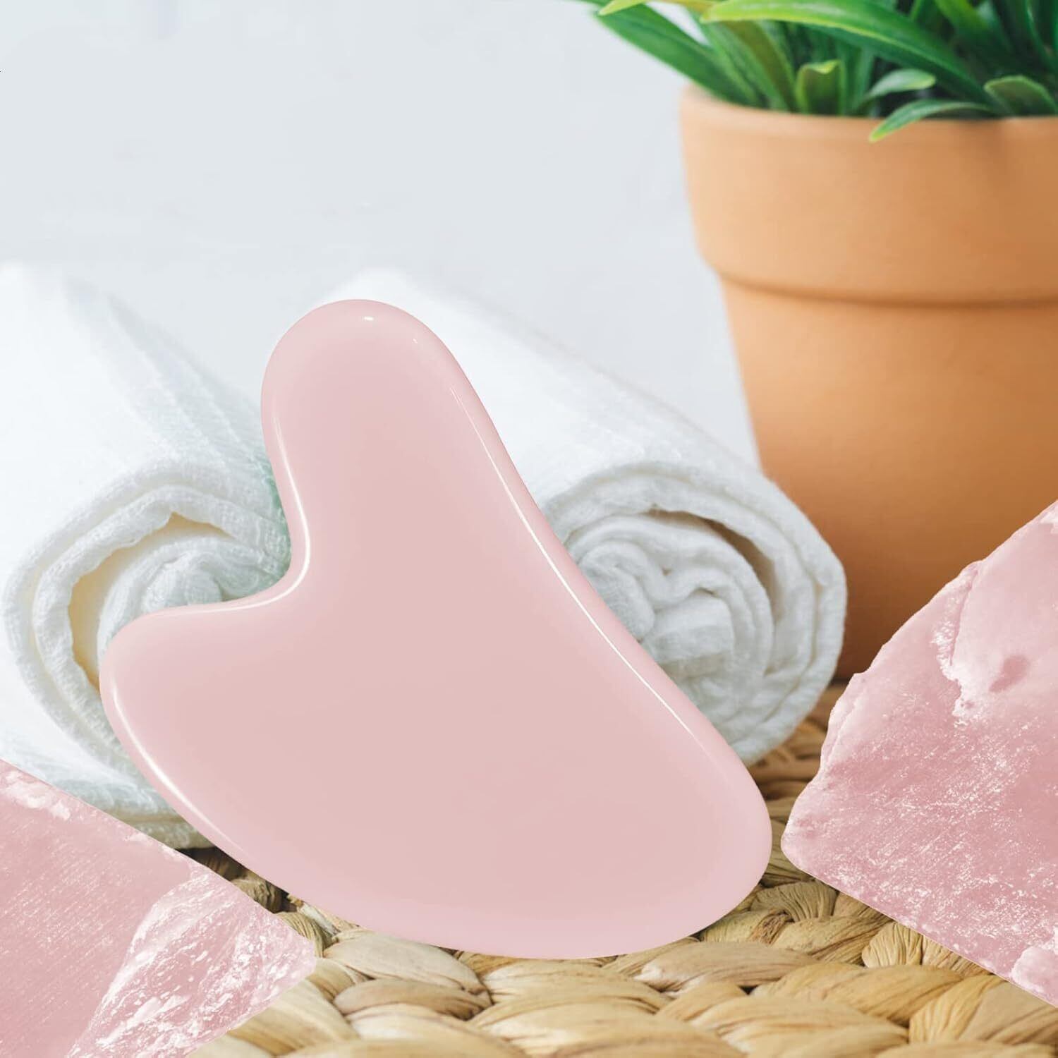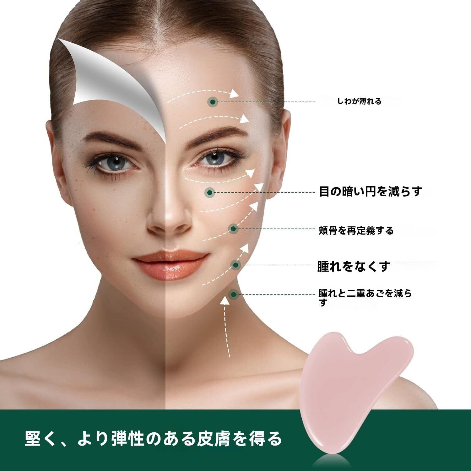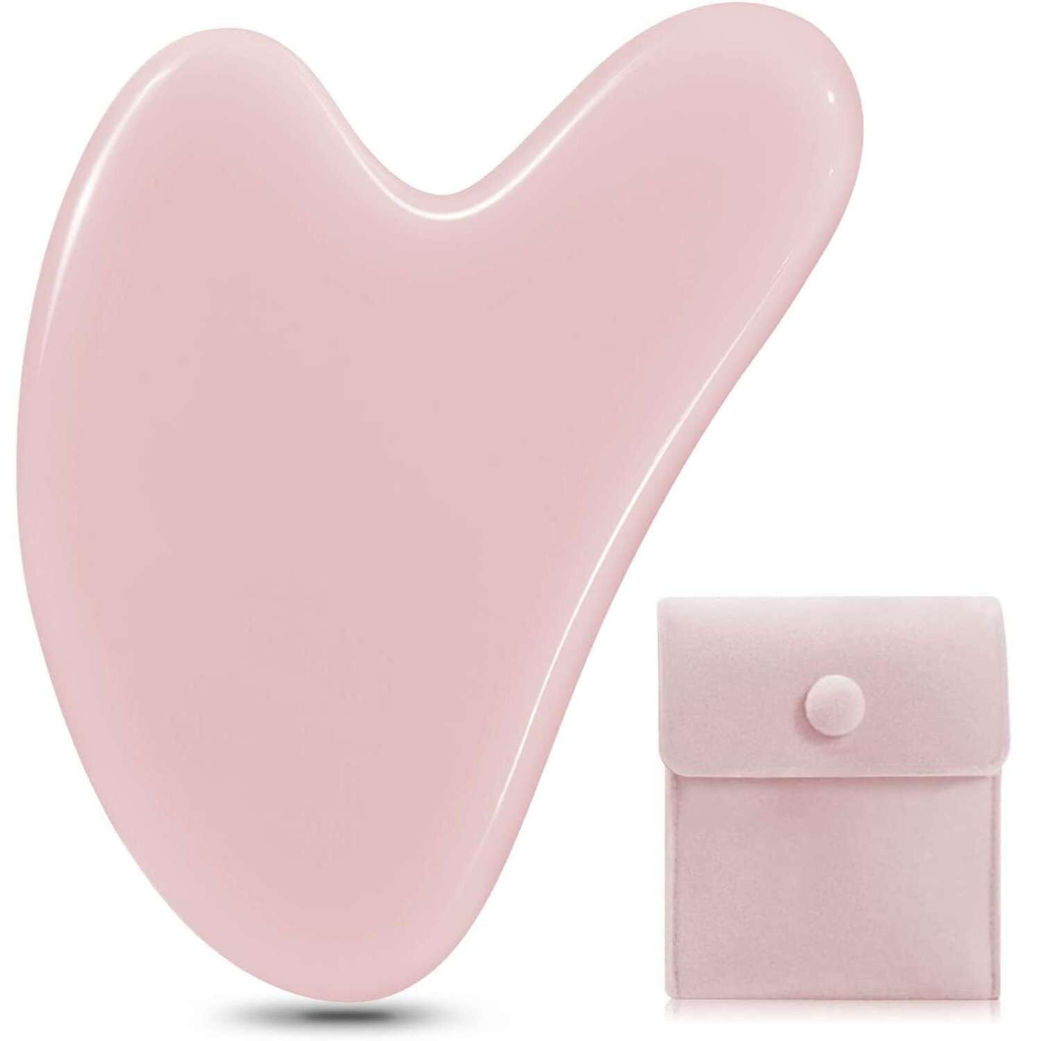 gua sha カッサ 美顔 かっさプレート 天然玉石 ハート形 フェイスリフト 頭皮 ツボマッサージ 浮腫/しわ改善 全身使える 美容ケアツール 美しい収納袋付きで持ち運びに便利(ピンク)