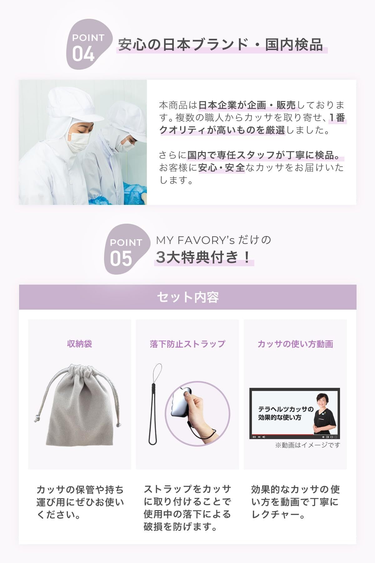 【 認定エステティシャン監修 】美容のプロのアドバイスをもとに、形状や素材を半年間かけて厳選。さらに、かっさの正しい使い方をまとめた動画・説明書もプレゼント。