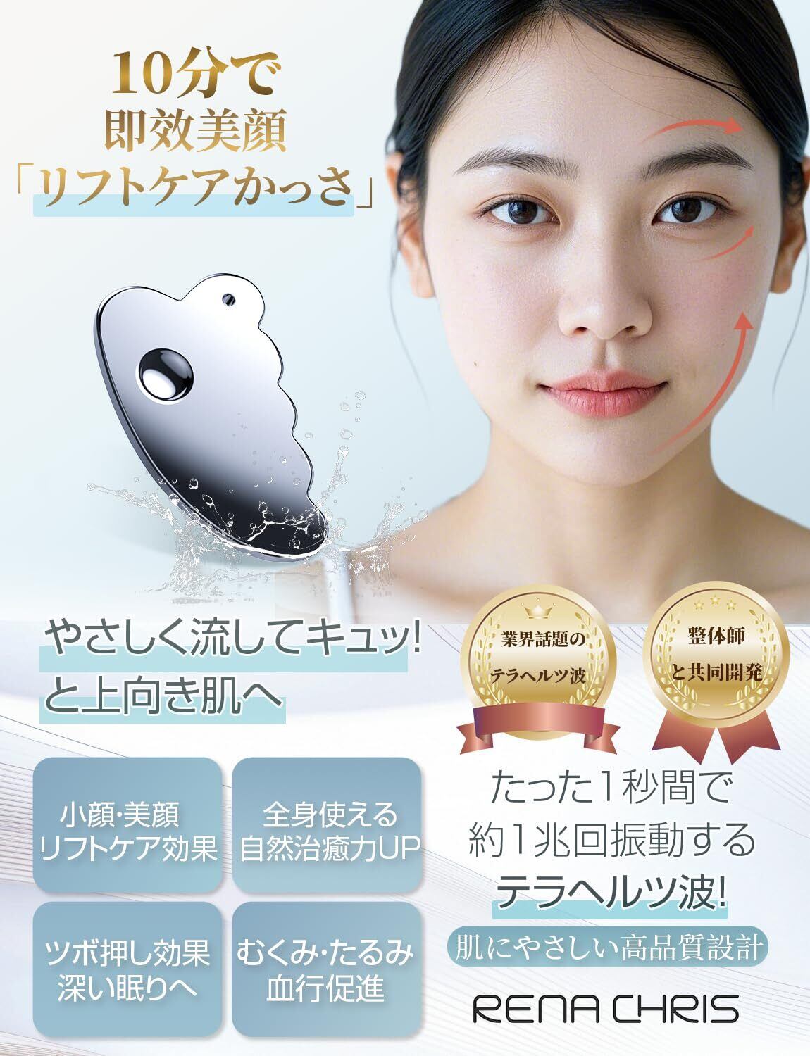 【新着商品】【人気雑誌紹介品・美容師監修】カッサ テラヘルツ かっさプレート 10分で即效美顔「リフトケアかっさ」 スキンケア ツボ押し 深い眠りへ誘う 全身使える Rena Chris Gua Sha | 無意味ステッカー