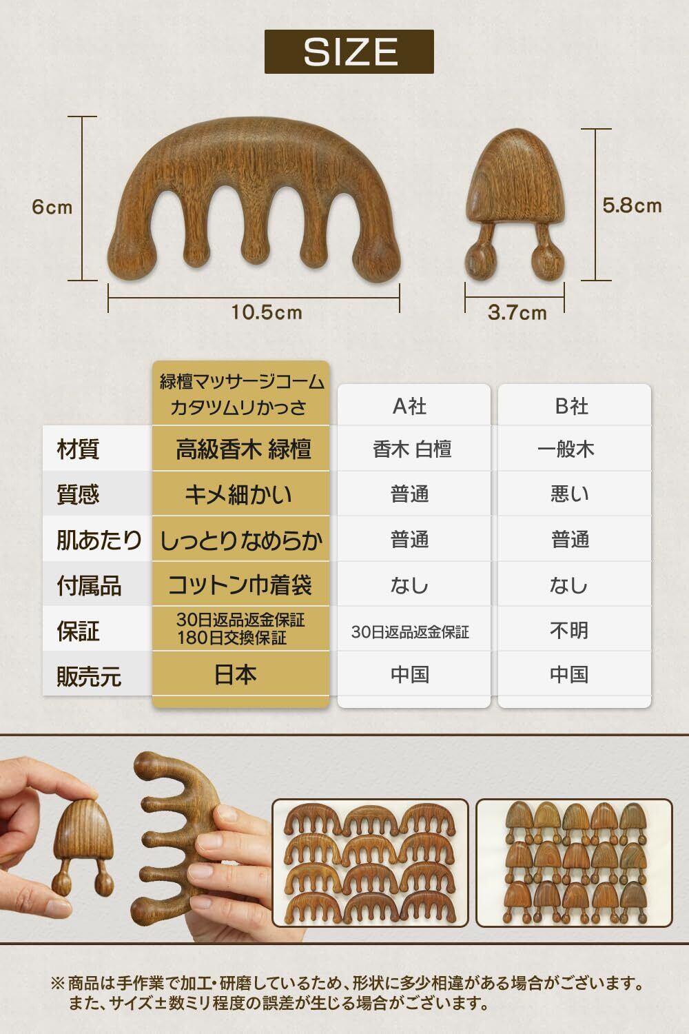 密度がある緑檀木を丁寧に研磨しているので、本体のキメは細やか、肌当たりは心地よく、木に油分があるのでしっとり滑らか!気持ちの良いマッサージが楽しめます!