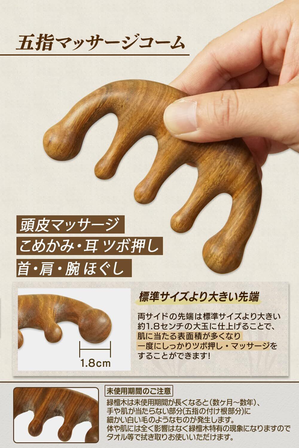 MILAAM 高級香木 「緑檀 五指マッサージコーム・カタツムリかっさ 2点セット」カッサ 頭皮 首 顔 鼻筋 ボディ マッサージ ツボ押し リンパ流し 心地よい肌あたり しっとり滑らか 高密度天然木