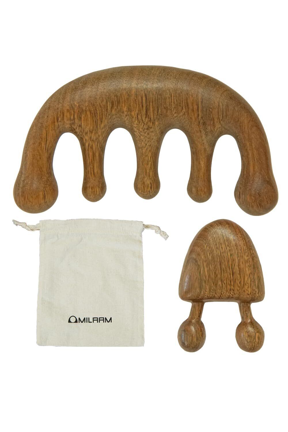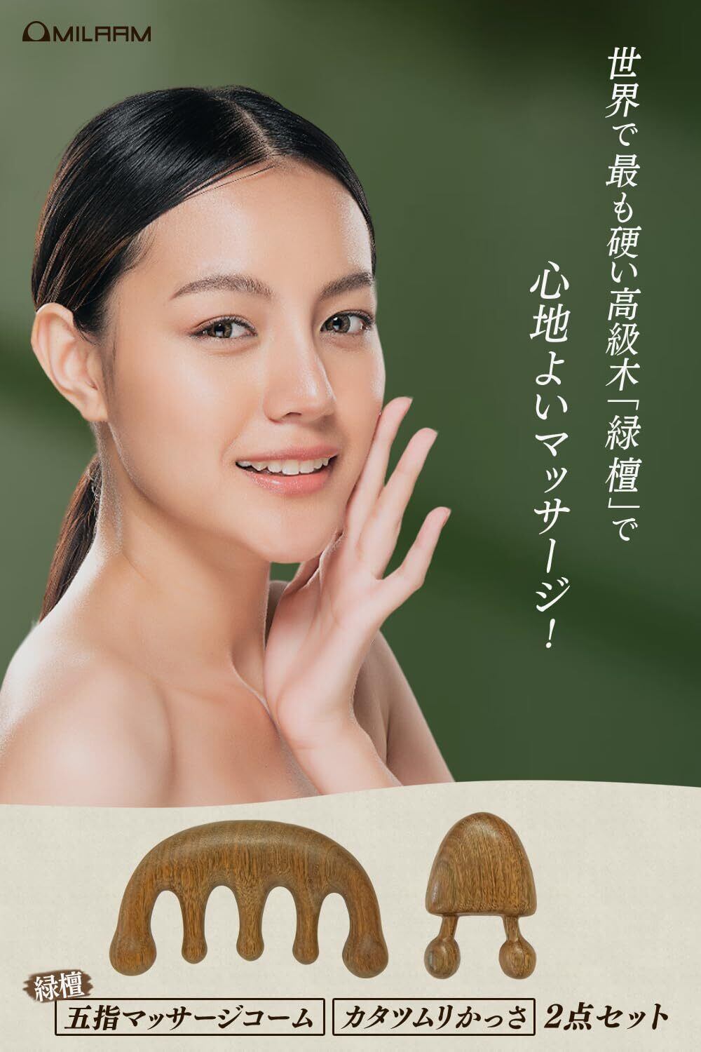 【新着商品】MILAAM 高級香木 「緑檀 五指マッサージコーム・カタツムリかっさ 2点セット」カッサ 頭皮 首 顔 鼻筋 ボディ マッサージ ツボ押し リンパ流し 心地よい肌あたり しっとり滑らか 高密度天然木 | 無意味ステッカー
