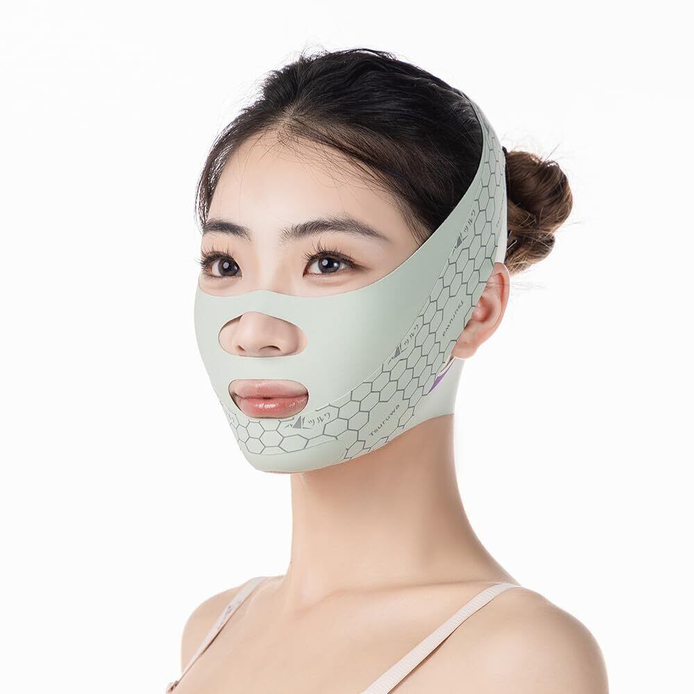 ツルワ 小顔ベルト フェイスベルト フェイスバンド フェイスライン矯正 浮腫み解消 小顔グッズ 調節可能 ほうれい線矯正 美容グッズ 二重あご 自宅で簡単小顔 (グリーン)