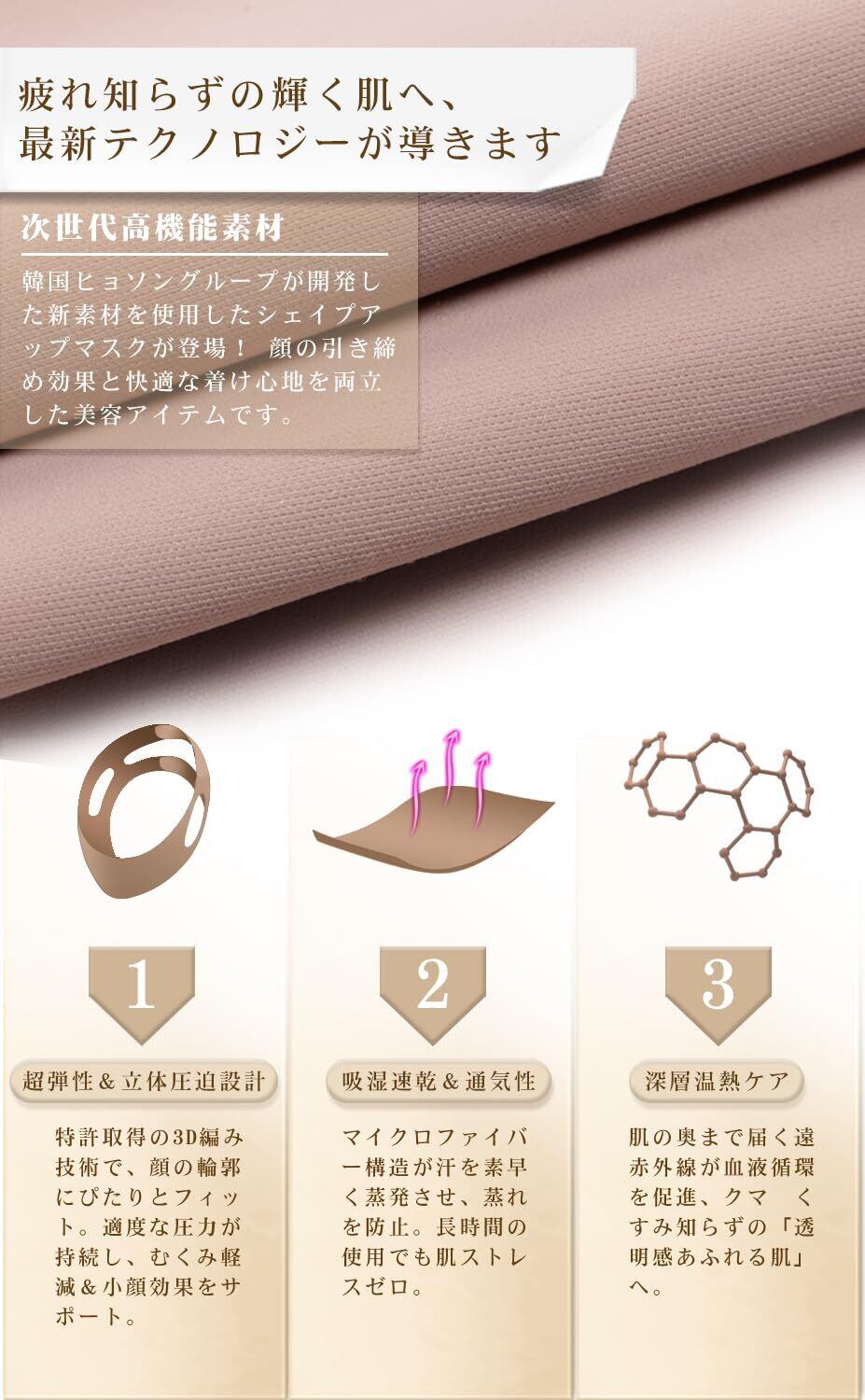 【革新的な素材で立体フィット】韓国最新開発の弾力素材を採用しており、肌に優しく弾性も通気性も抜群。快適さとフィット感を兼ねた3D立体構造で顔面を優しく固定し、期待の小顔を実現!ほうれい線、二重あごの解消にも効果的!自宅で簡単にリフトアップ!美容大国のテクノロジーをぜひお試しください。