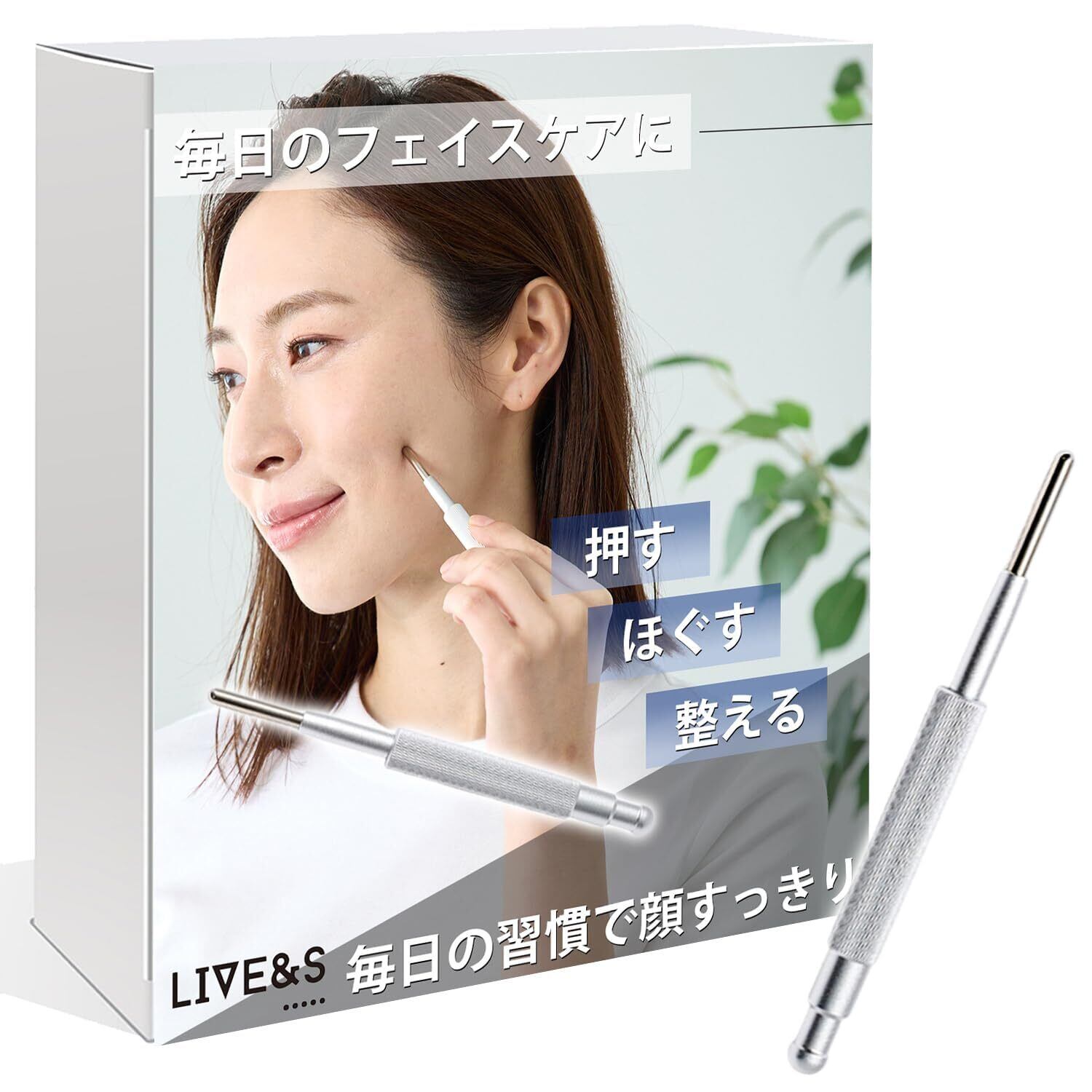 フェイス ツボ押し棒 バネ式 レディース 【すき間時間でポスポス出来る】 (シルバー)