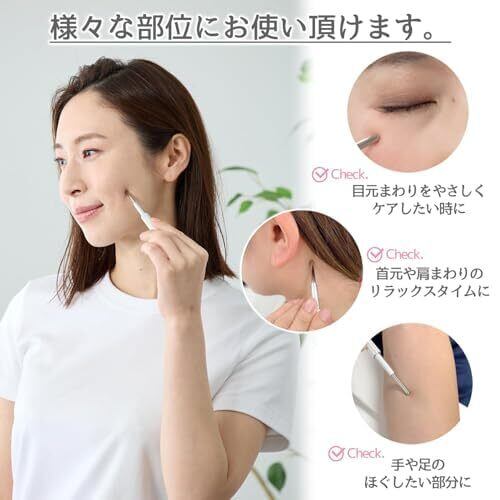 【さまざまなケアに使える1本】 顔まわりや手足など、さまざまな部位にお使いいただける多機能アイテム。手では届きにくいポイントも、程よい刺激でリフレッシュしやすく、コンパクトなサイズ感で初めての方にも扱いやすい設計です。気軽に取り入れられるセルフケアアイテムとして、ご好評いただいています。
