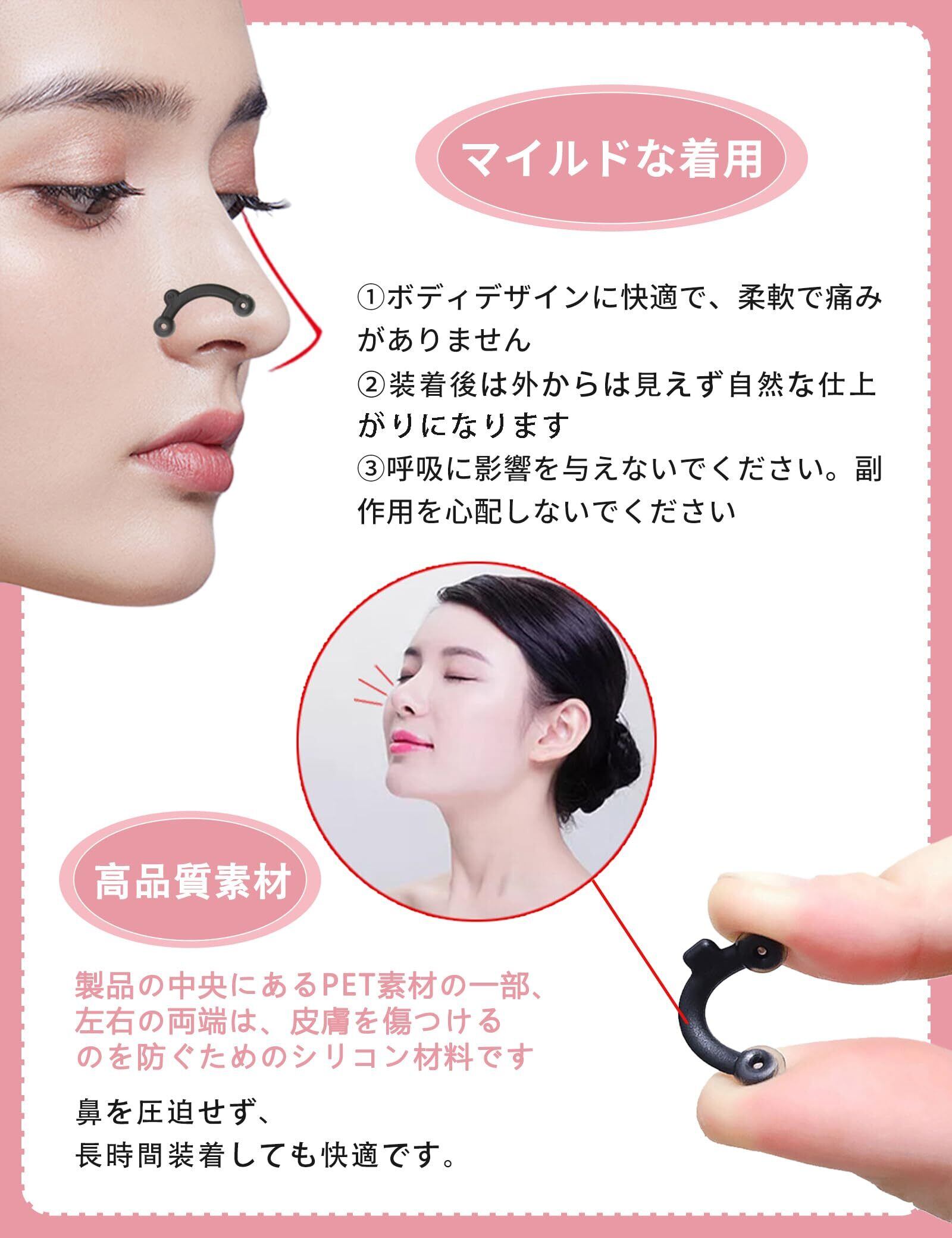 【主な機能】当社の安全ノーズパッドは鼻の形を美しくするのに役立ち、肌に優しく、無臭で安全で、副作用がなく、呼吸に影響を与えません。