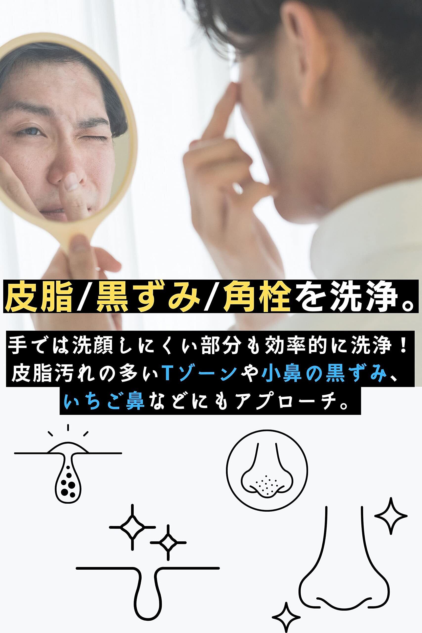 【皮脂/黒ずみ/角栓を洗浄】 多層に植毛した極細毛が小鼻やあご周り、フェイスライン、目元にフィット。手では洗顔しにくい部分も効率的に洗浄!皮脂汚れの多いTゾーンや小鼻の黒ずみ、いちご鼻などにもアプローチ。