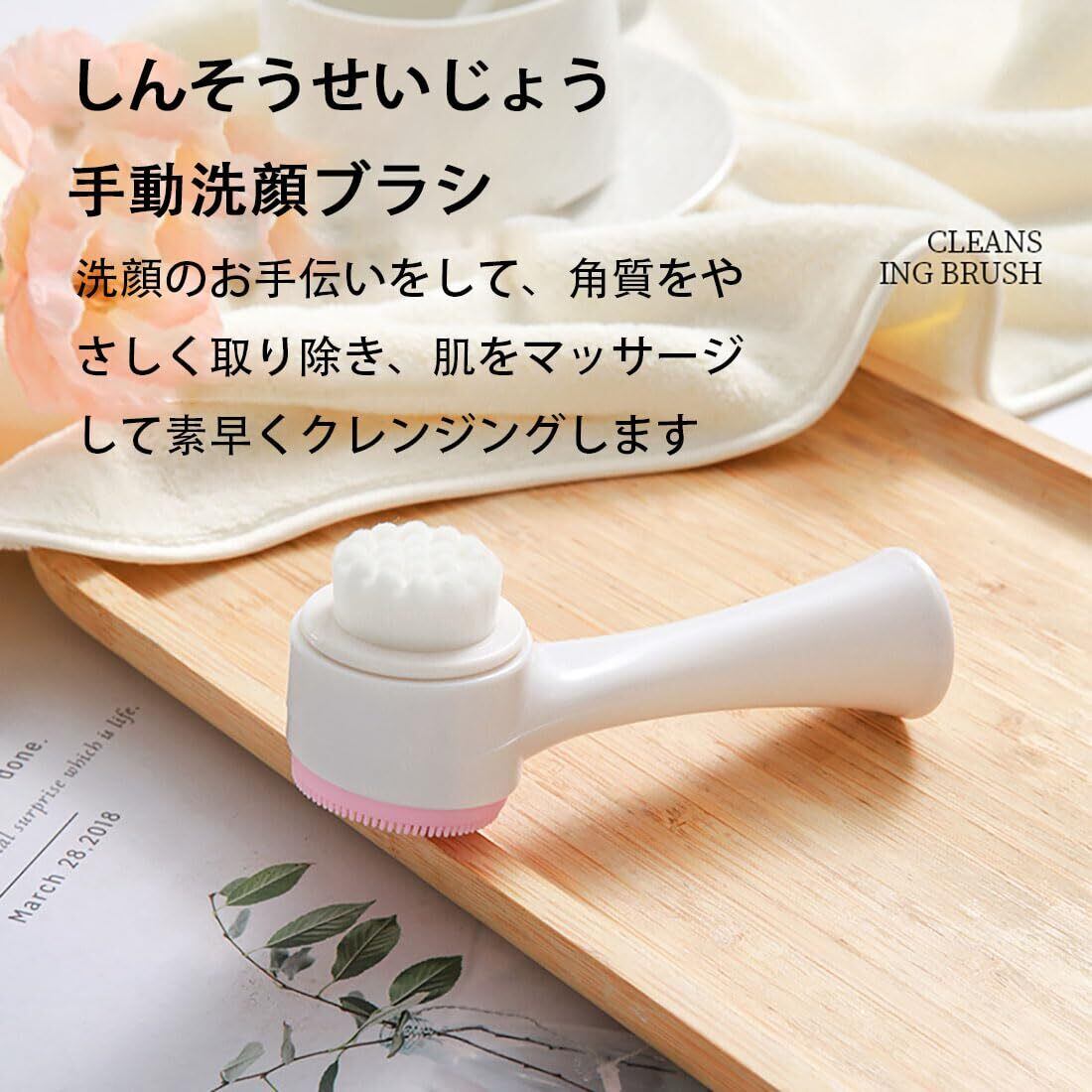 【在庫処分】ダブル洗顔ブラシ 毛穴ケア 極細毛 濃密 柔らかい 泡立ちがよい 黒ずみ洗浄 マッサージ 耐落下耐久性 毛が落ちにくい 清潔収納 男女兼用 洗顔 死皮除去 黒ずみ 角質ケア用(ブルー) | 無意味ステッカー