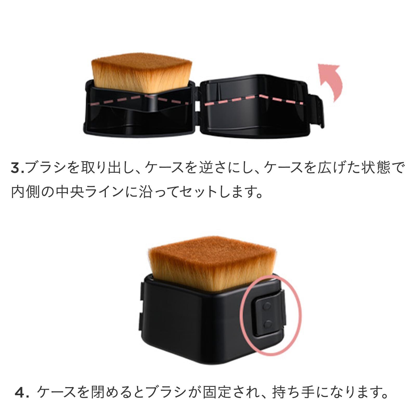 ケースが持ち手に変身。垂直カットされた毛がソフトな肌あたりで心地よく、さまざまなベースメイクにマルチ対応するブラシ。