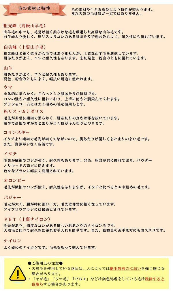 ●獣毛の筆に近い風合いながら、獣毛の筆と異なり、筆のお手入れも簡単で扱いやすく、動物臭の苦手な方にもおススメ