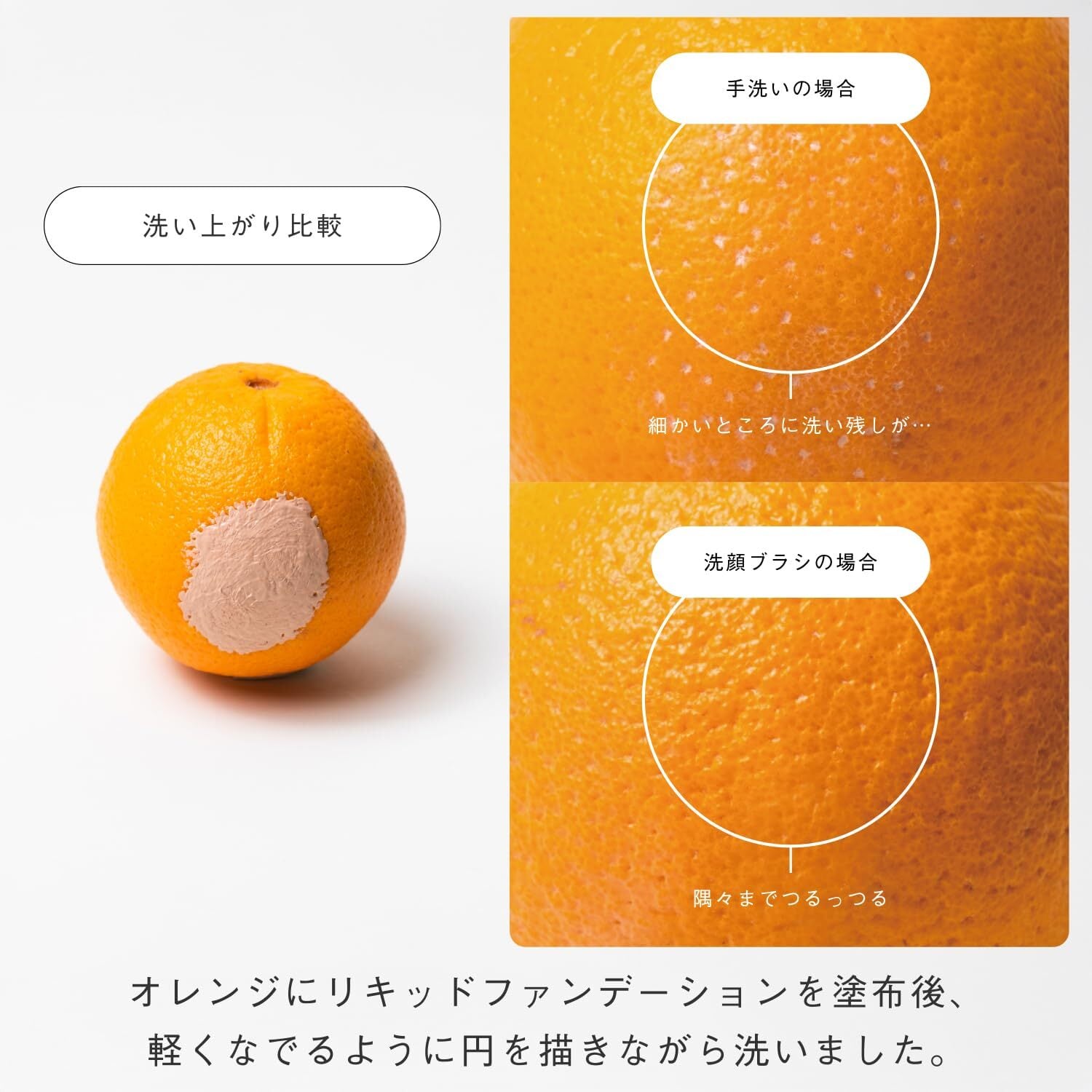 ブラシを使うことで肌面に対して均一に力が入り、摩擦係数が低くなる。手洗いと違い、洗浄力の高い洗顔料に頼る必要がなく肌に優しい。ただし、洗いすぎにはご注意。ご使用は「週1回」に。