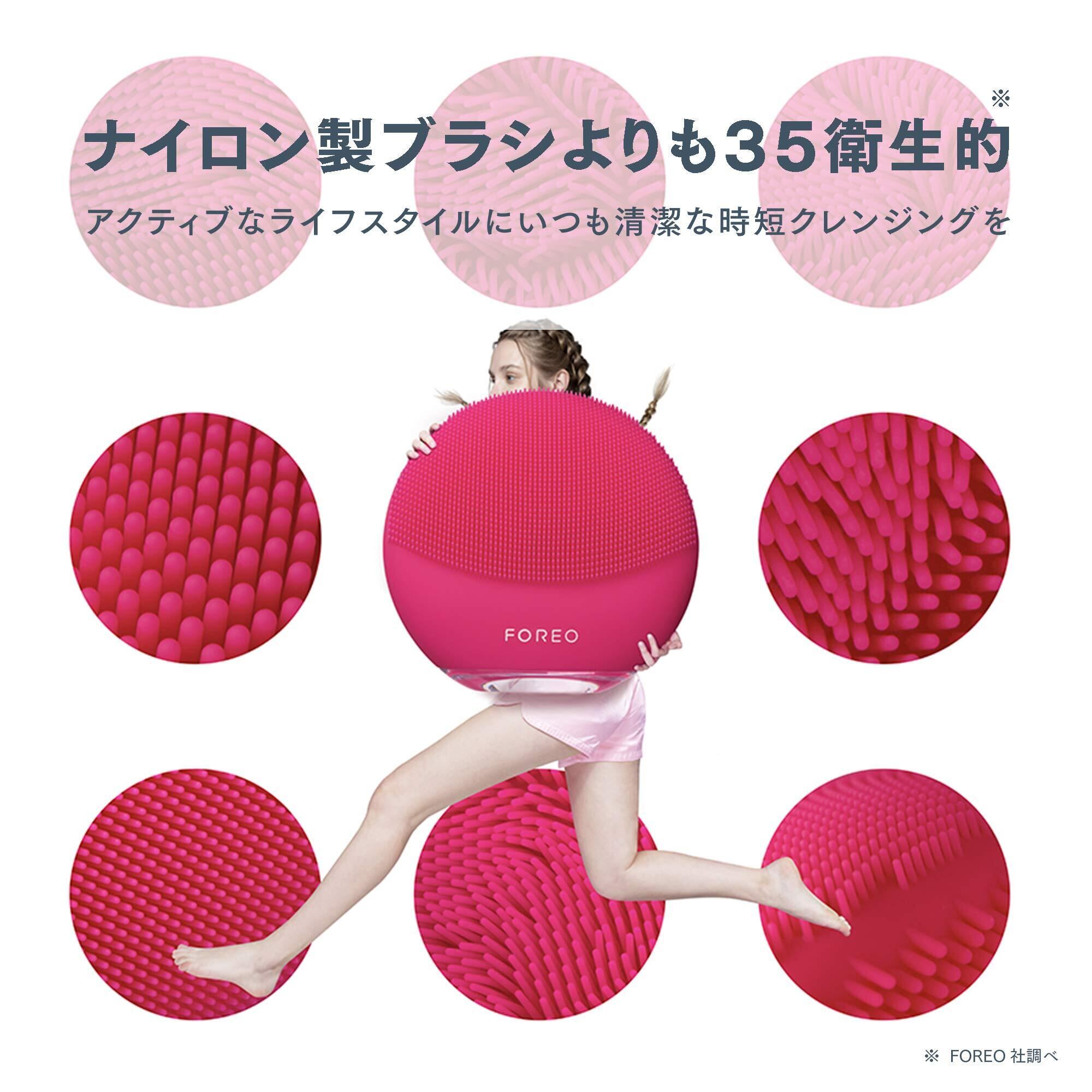 LUNA mini 3のソフトなシリコーンポイントが肌をこすらず、振動で汚れを浮かせて落とし、敏感肌も傷つけずにディープクレンジング