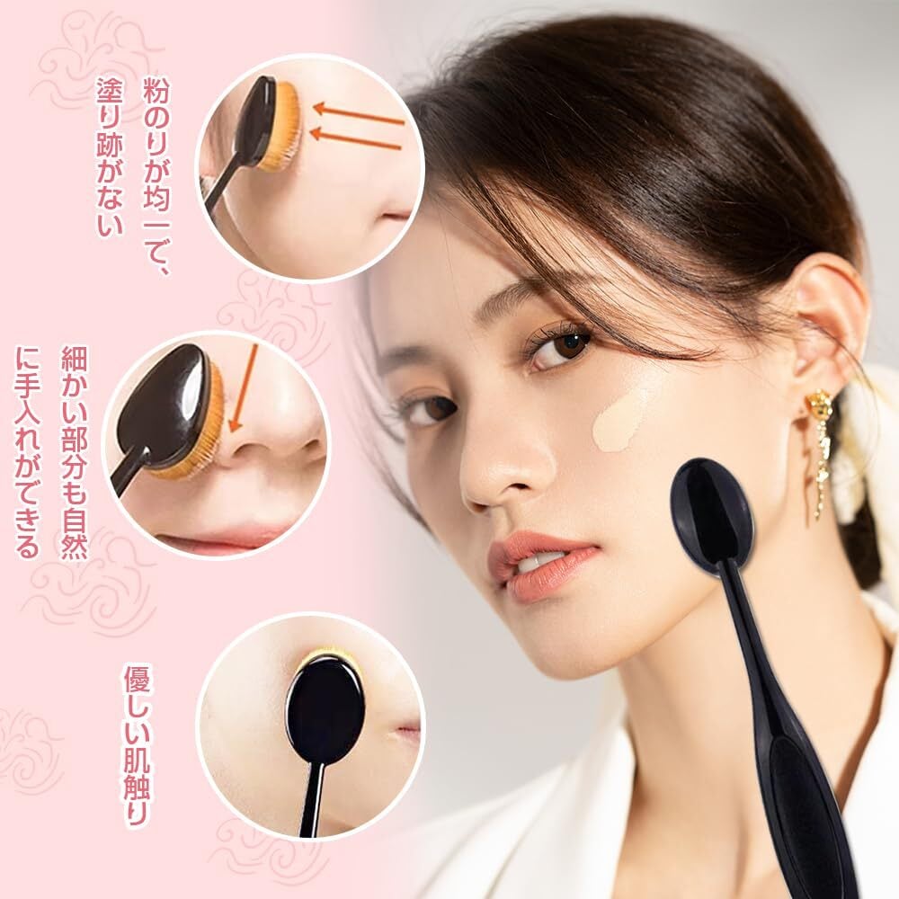 【侵れたデザイン】そこで触り心地がよくフアンデ一ションを均一に密着させ、細部まで美しくカバ一でき、秦肌感のある自然な仕上がりを追及したプラシとなっています。