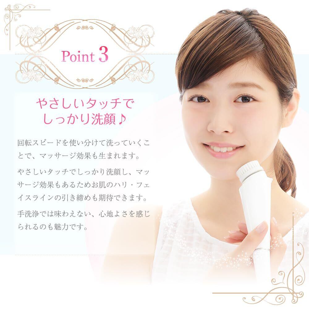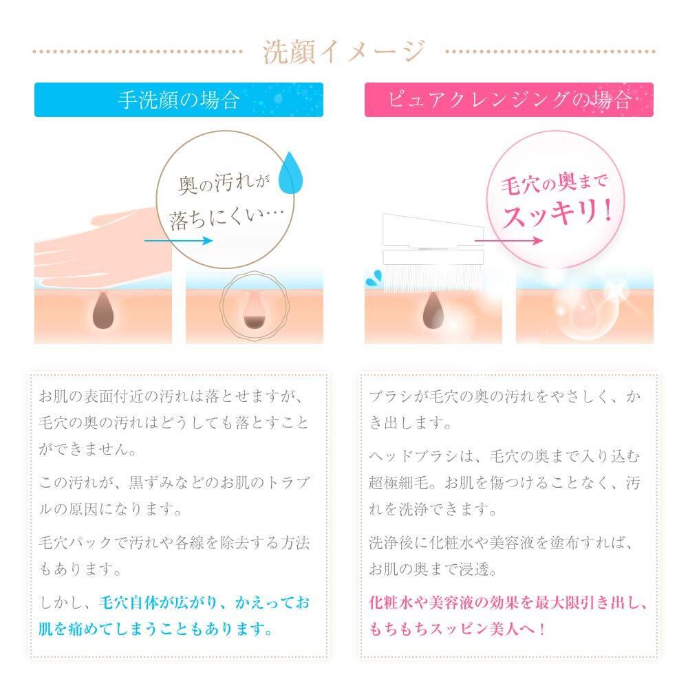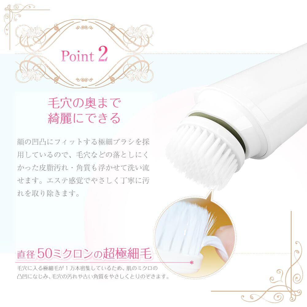 【360°回転のブラシヘッドが毛穴の汚れを洗浄!】肌表面から毛穴の奥までキレイにすることにより、 化粧水や美容液の浸透しやすいお肌になり、保湿力もグーンとアップ!