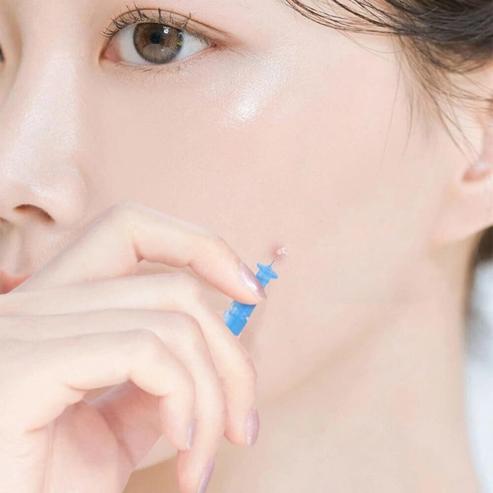 【傷跡最小限のピアッシング】細身で尖った形状が、皮膚表面への負担を最小限に抑え、スムーズなシミ・黒ずみ取りをサポート。美肌を損なう赤みや腫れを防止します。