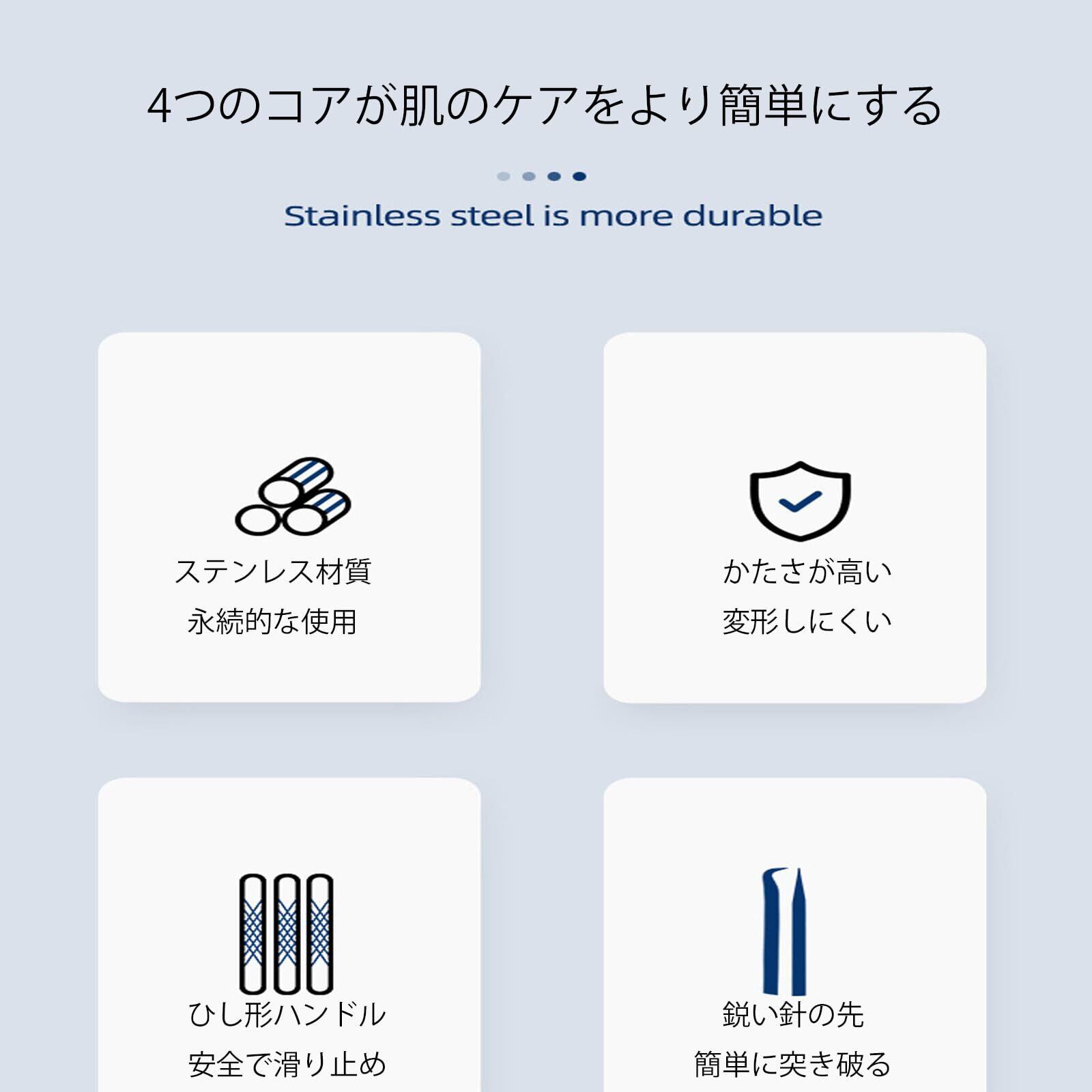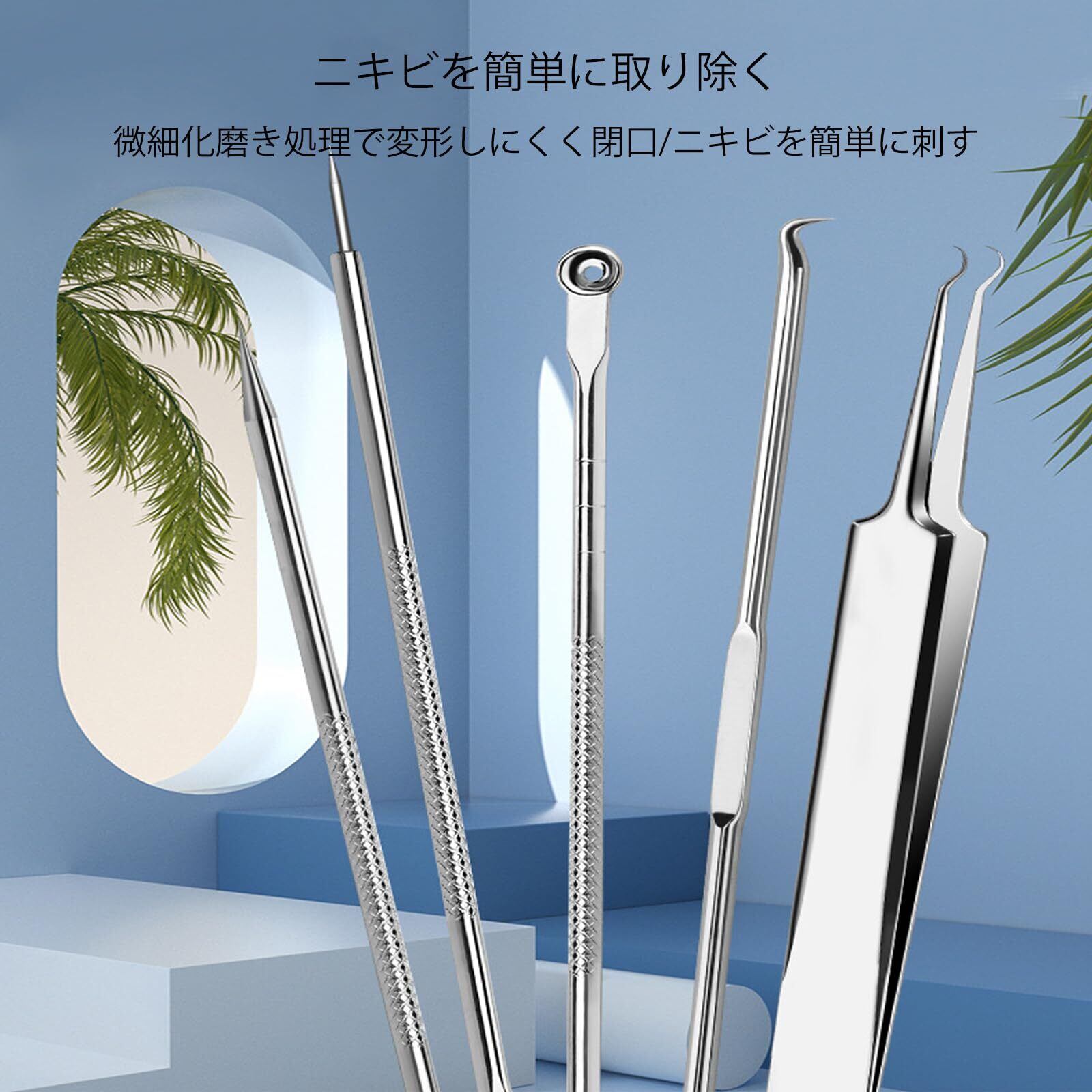 【仕様】数量:5点セット、カラー:シルバー、ニキビ除去ツールは様々な用途に適している。顔、鼻周りなどの角栓、黒ニキビ、白ニキビを除去するための専用スティックセットです。ニキビや黒ずみを取り除くだけでなく、毛を取り除くのにも使えます。