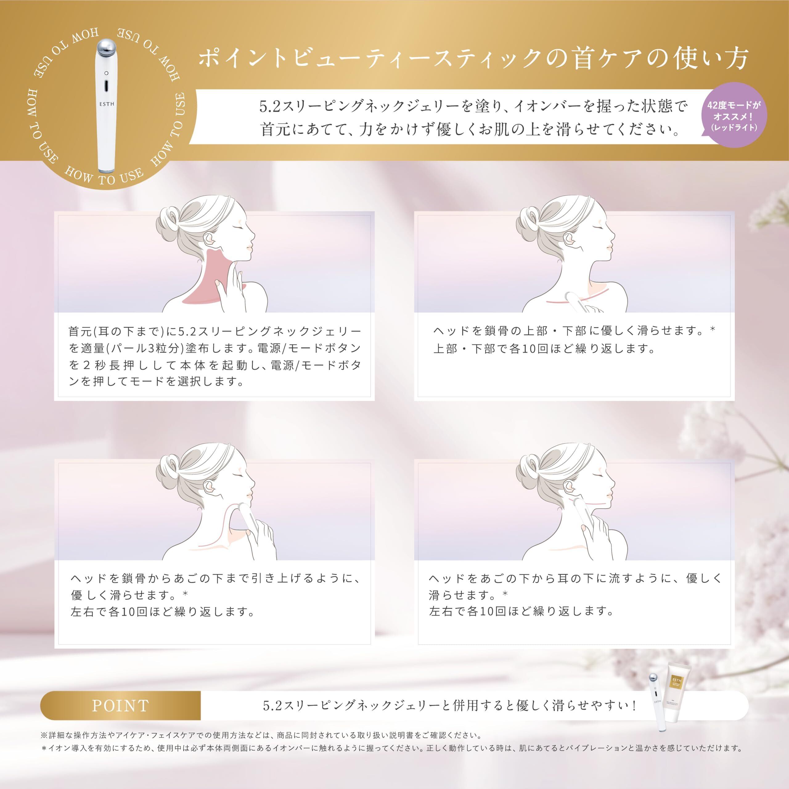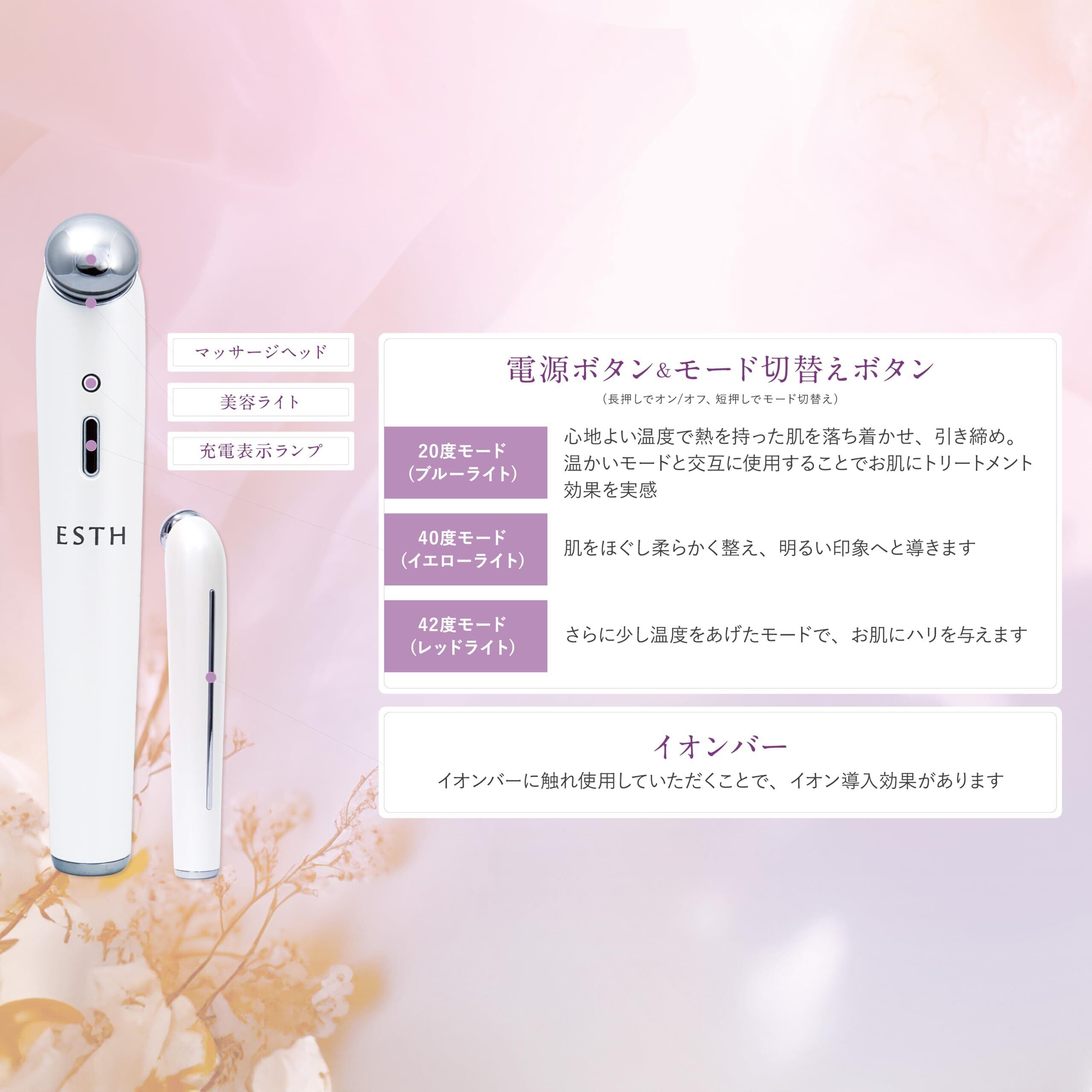 ESTHの目元、フェイスラインや首元などのお悩みにアプローチする美顔器。
