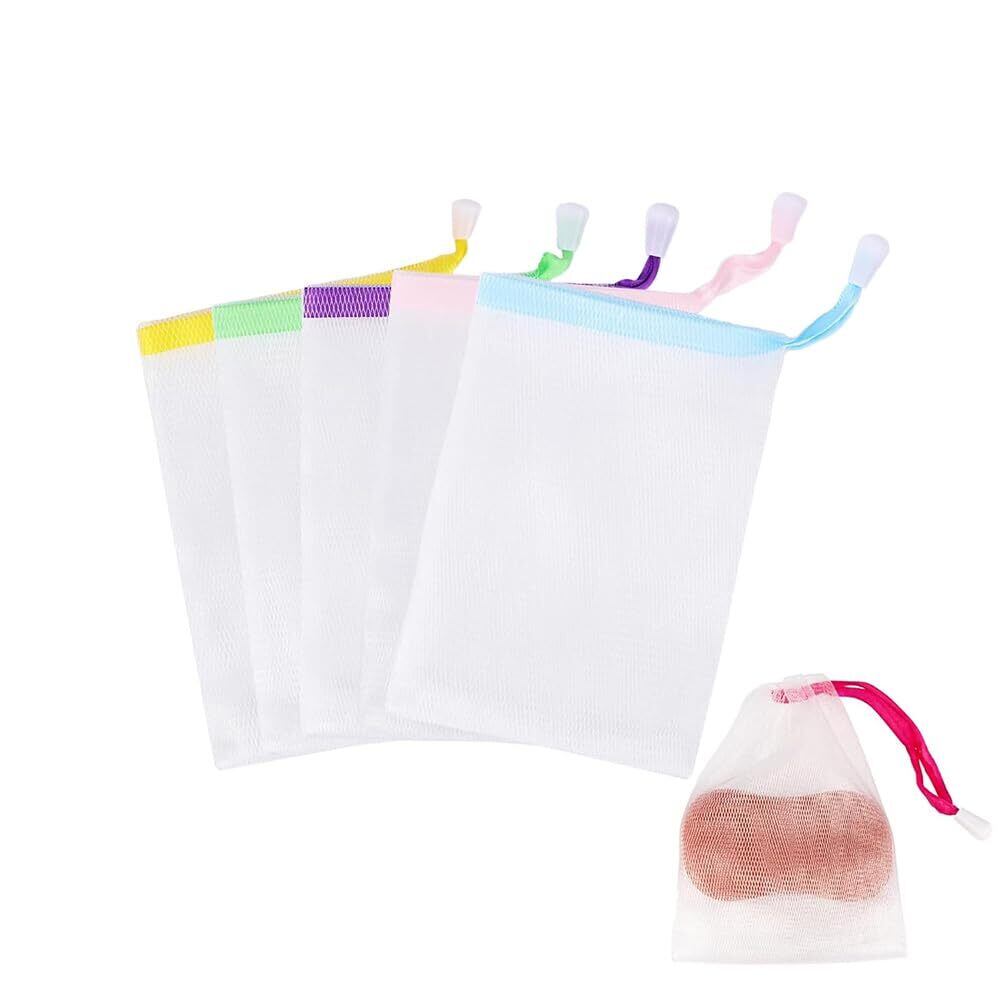YIXINLYMY 石鹸ネット 泡立てネット 洗顔ネット 石鹸入れたまま ト手軽に泡が作れる 泡が作れる 洗顔用 ボディ用 5個セット ランダムな色