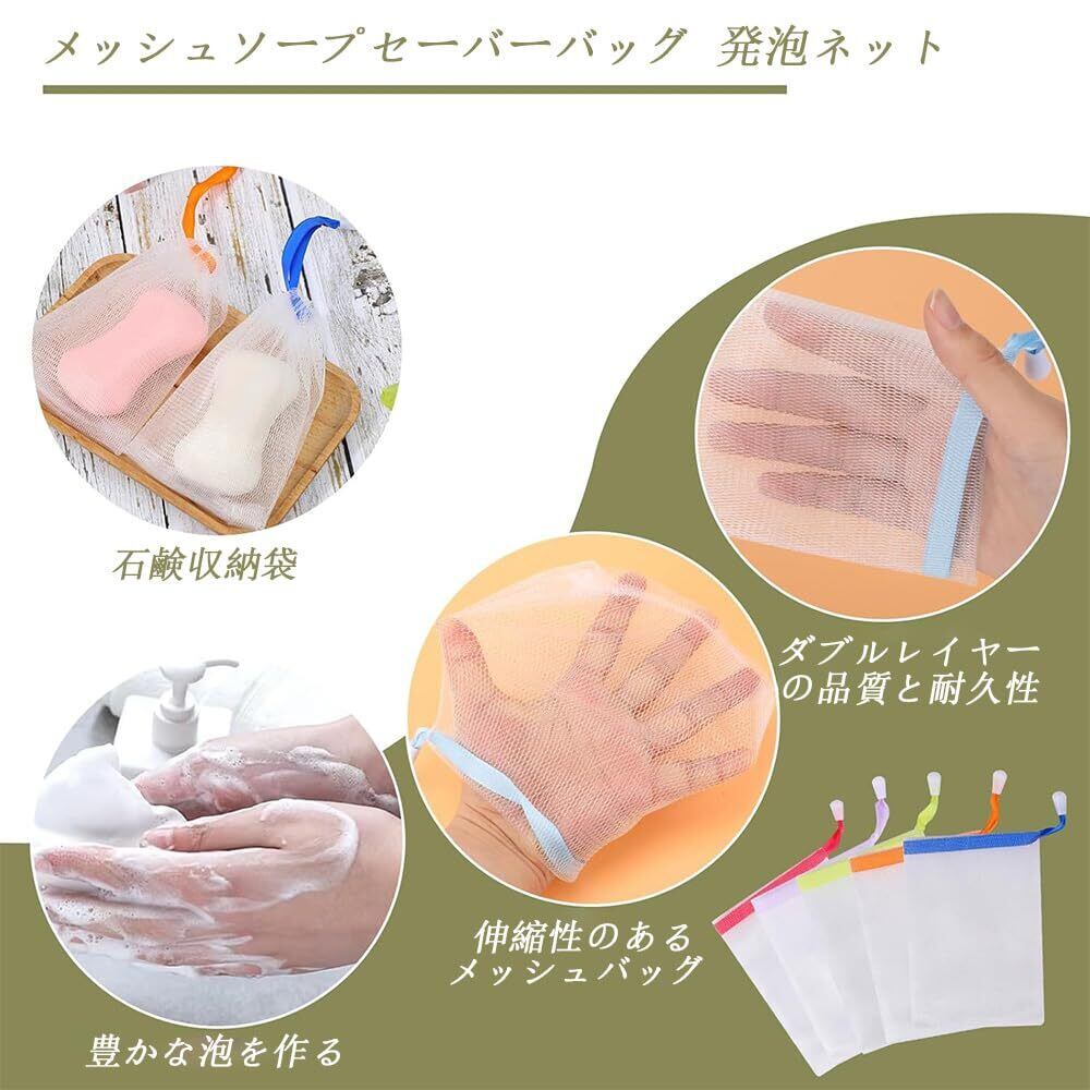 【商品内容】石鹸を手軽にクリーミーに泡立てられる泡立てネットが 5個セットです、サイズ : 約15×9cm、カラー:ランダムな色、材質:安全なナイロン素材 ネット自体にクッション性があり弾力があります。