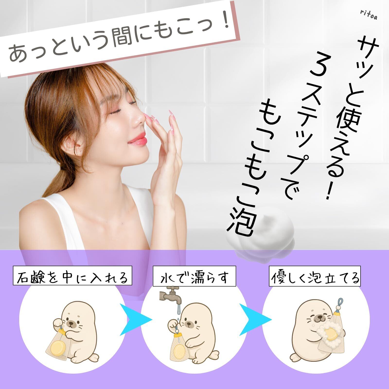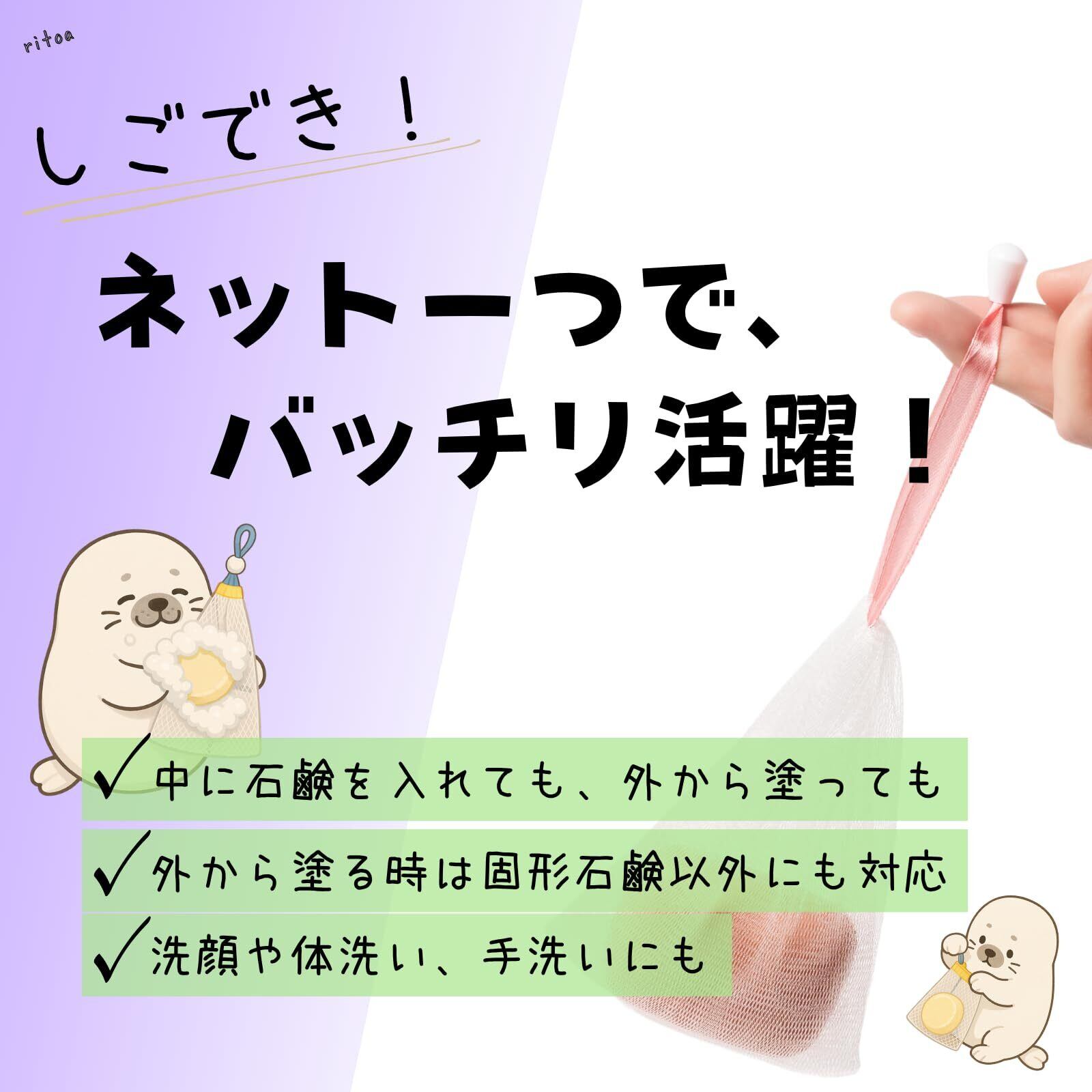毎日使う 泡立てネット だからこそ、衛生的で便利なものを選びたい方に。泡立てネット は 石鹸 を中に入れ、ネットごと 吊るす だけで簡単に乾燥。泡 立ちが良く、ふわふわの泡で洗顔や 体洗い に大活躍します。