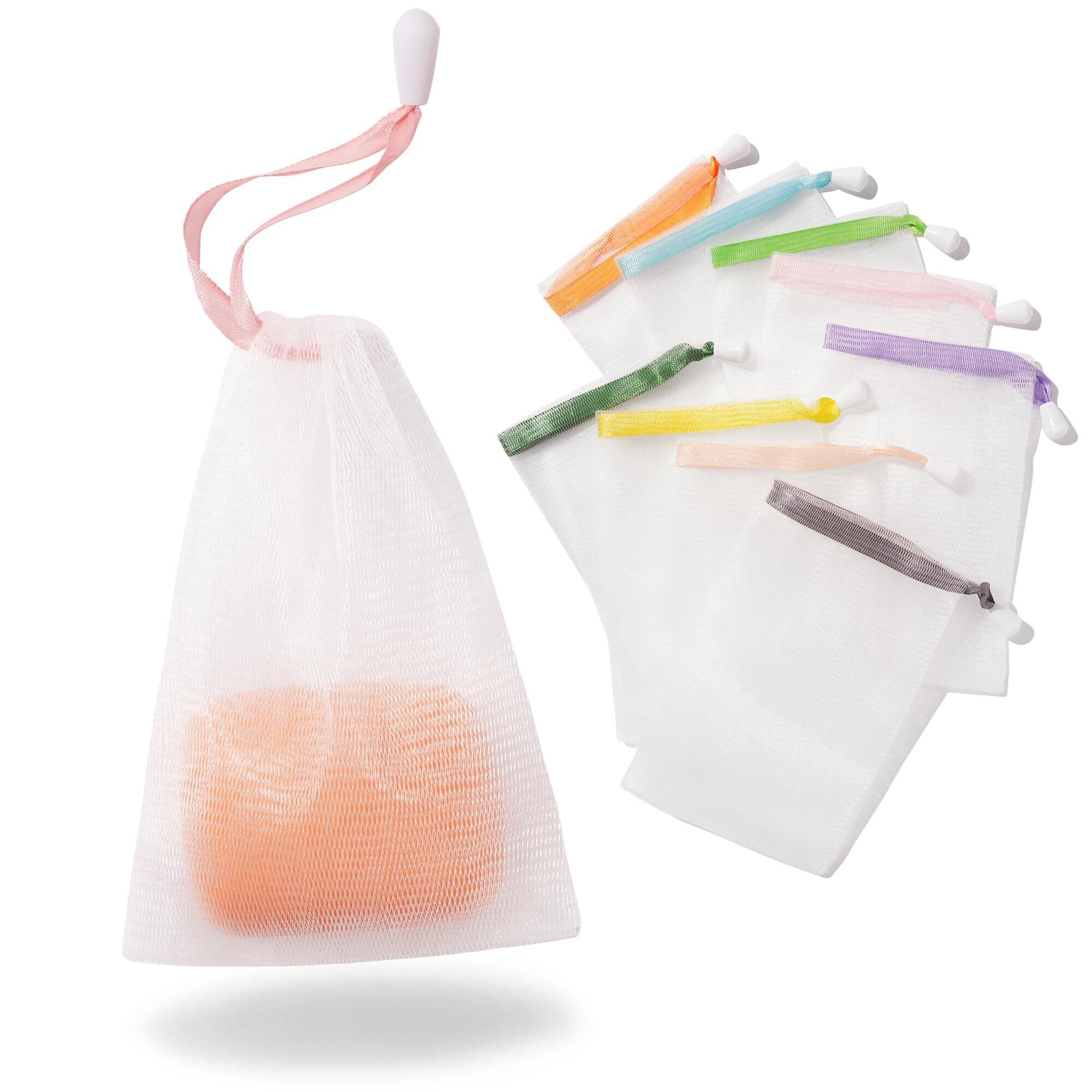 【石鹸を中に入れて吊るすだけ】 泡立てネット 石鹸ネット 巾着 カラー 石鹸入れたまま使用 【×8個】