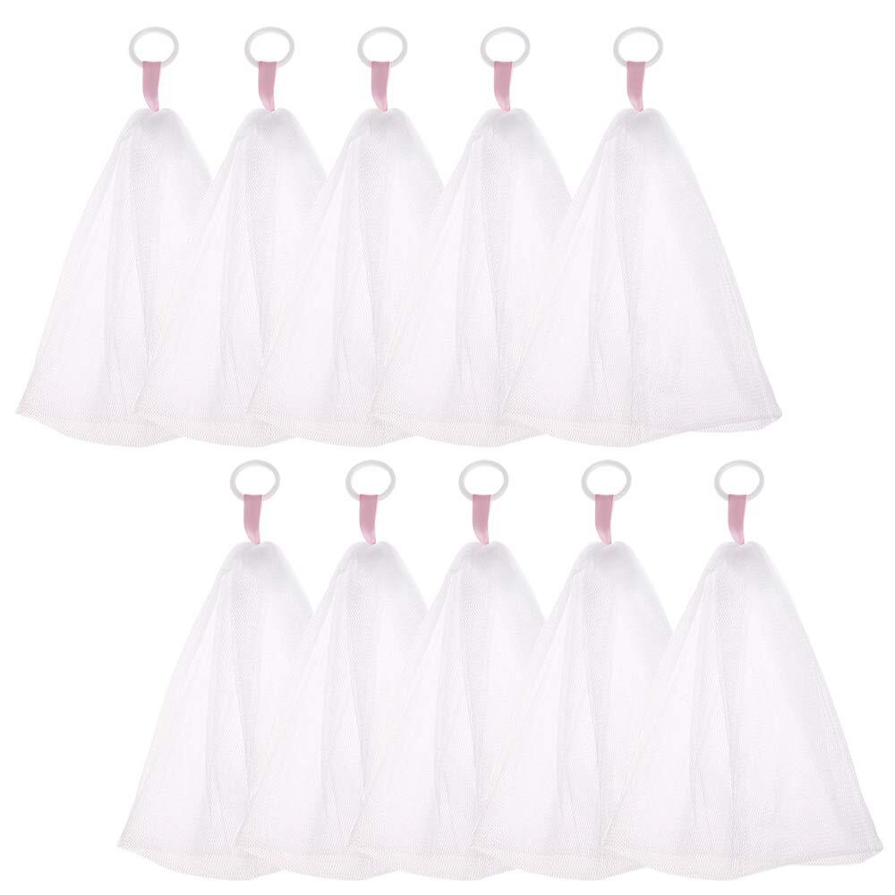 popluxy 泡立てネット 石鹸 ネット 洗顔 あわだてネット 石けんネット 壁掛け用リング付き 10個セット