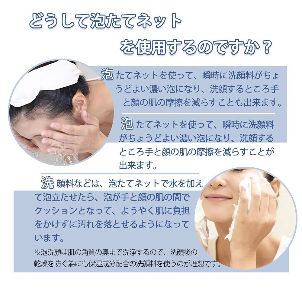 【洗顔ネット│ご注意】①本製品を直接肌に使用することはご遠慮ください。 ➁本製品は、非発泡性や低発泡性の洗顔料(成分で石鹸ベースなし、低石鹸ベース)およびスクラブ洗顔には適していません。③クレイタイプの洗顔料はネットが破けやすくなるのでご注意ください。 ④火のそばや高温になる場所には置かないでください。 ⑤衛生上、3ヶ月を目安に定期的な買い替えをおすすめします。⑥お肌に合わないときは、ご使用をおやめください。