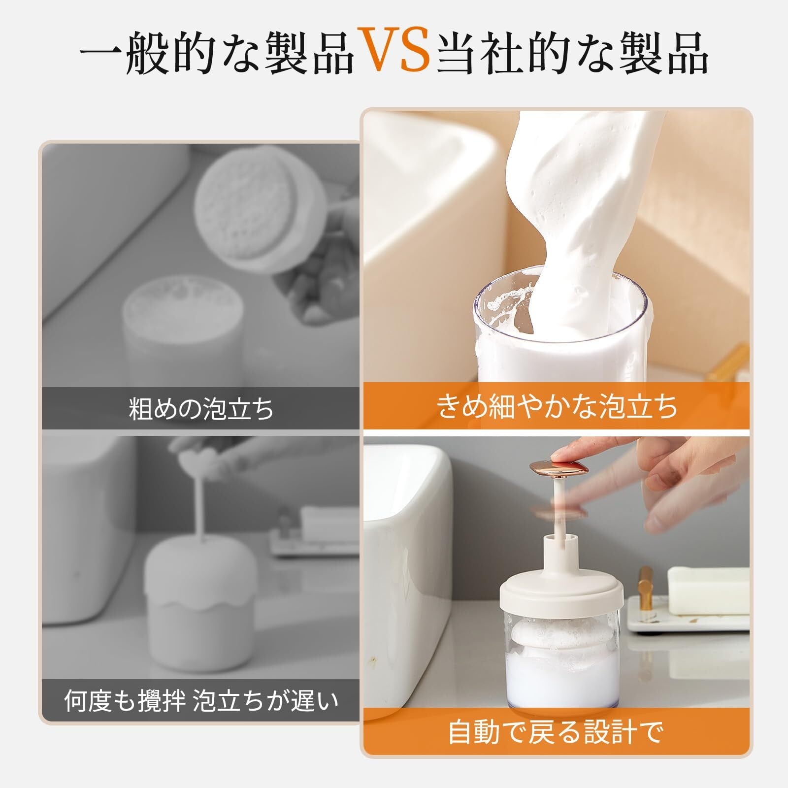 【クリーミーな泡がわずか5秒で完成】洗顔泡だては、自動回復式のデザインにより、片手で簡単に操作できる。ボタンを軽く押すだけで、まるでホイップクリームのような、細かくてリッチな泡を素早く作りだす。朝の忙しい時間や夜のリラックスタイムにも、スムーズで優雅な泡立て体験をお届ける。