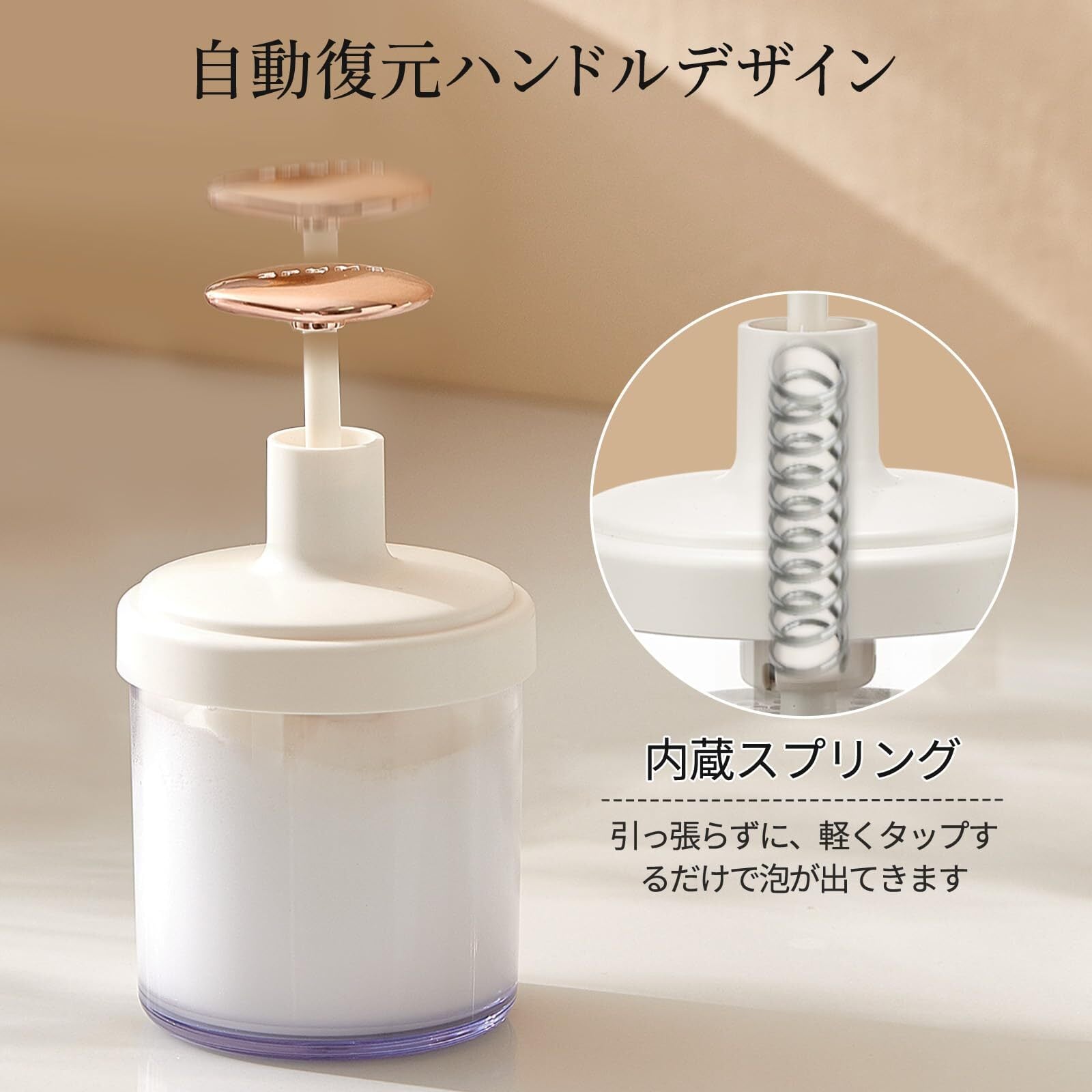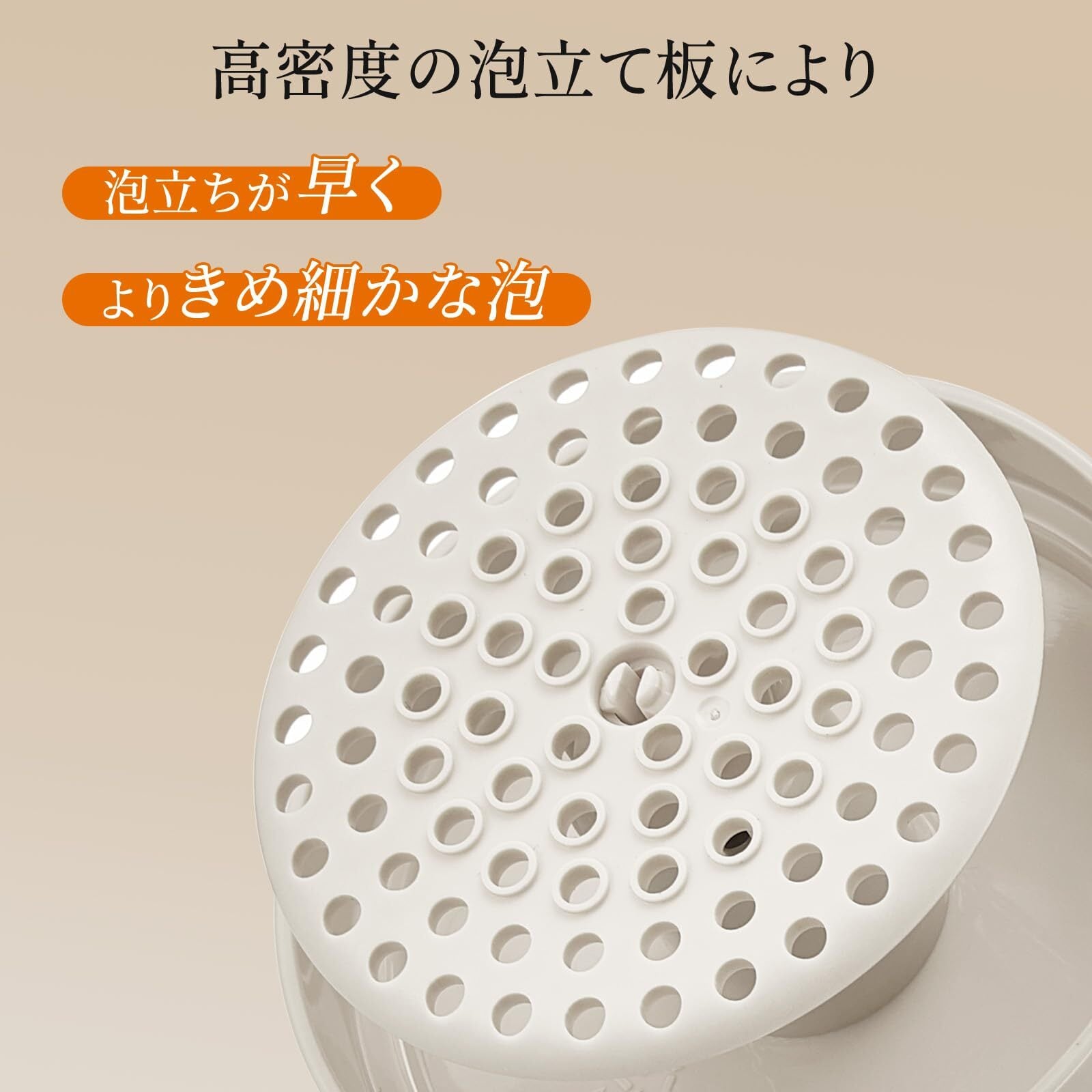 【心地の良さ】密閉型の泡立て板が効率よく泡を作り、少ない力で最大の効果を発揮する。軽量で握りやすいハンドル設計は、手にぴったりフィットし、使用中の疲れを軽減する。透明なボディと華やかなデザインで、毎日のケアが楽しくなる一品である。