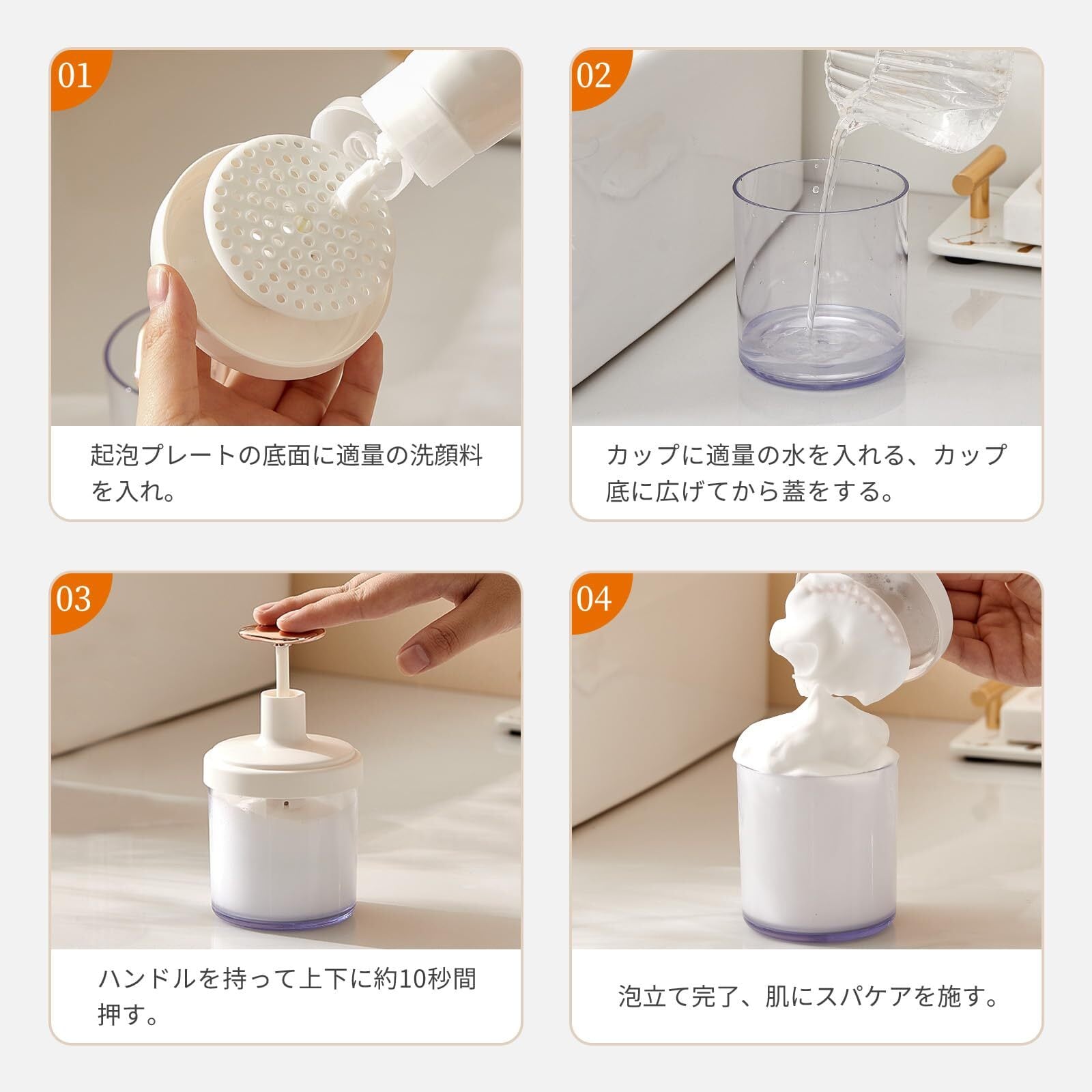 【簡単な分解洗浄で衛生的に使用可能】洗顔泡立て器は、シンプルな構造でパーツが簡単に分解できる。隅々まできれいに洗えるため、清潔さを保ちながら安心してお使いいただける。特別なケアを必要とせず、日々の使用が楽になる。