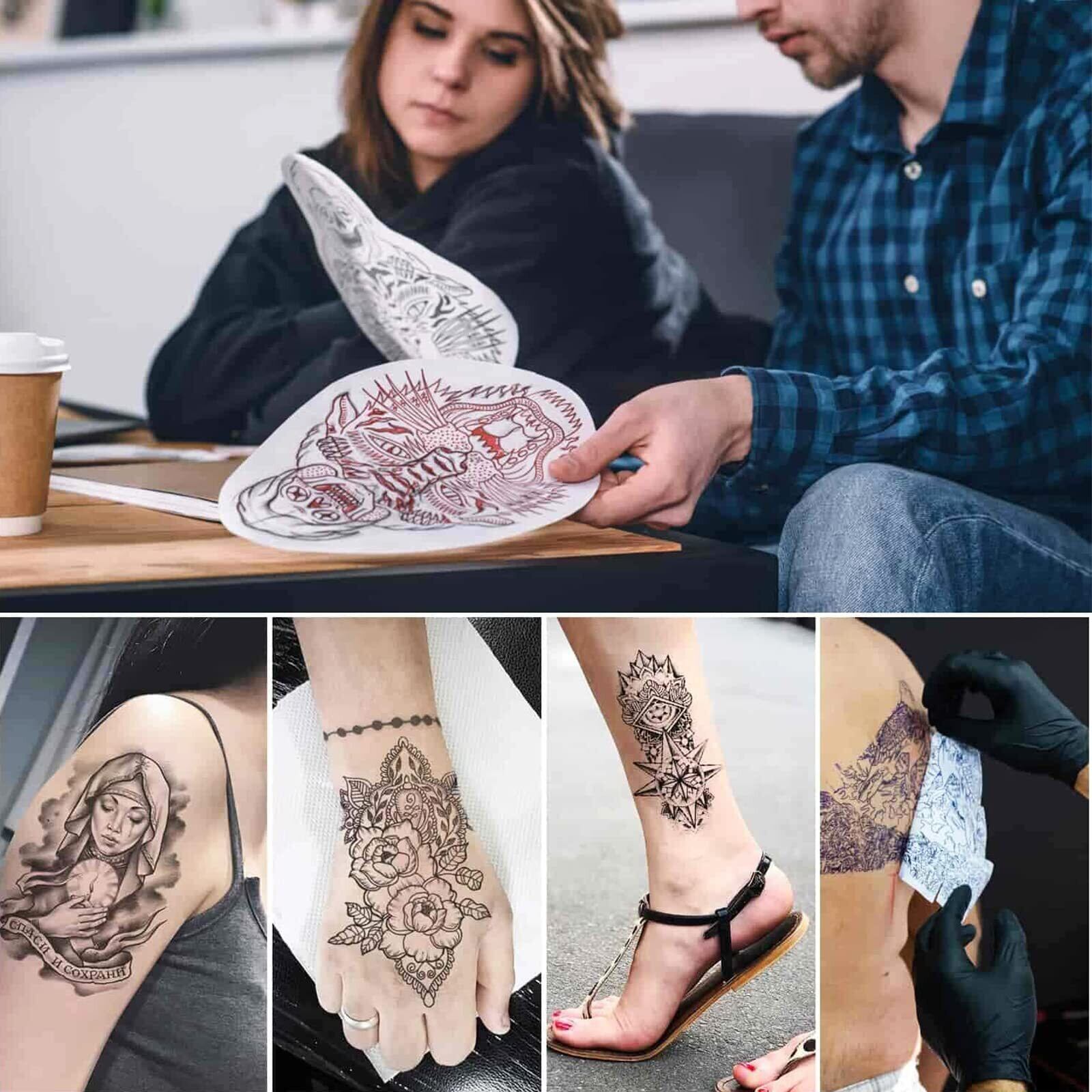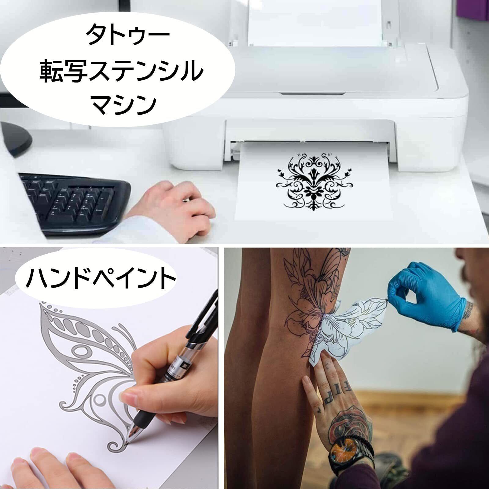 2つの使用方法-転写紙を使用すると、元のソースから画像をトレースし、転写紙から、最終的には皮膚までトレースできます。 サーマルコピーマシンやドットマトリックスプリンターと高い互換性があります。または、ハンドドロームステンシル用のボールペンを使用して、オリジンラのデザインをトレースすることもできます。