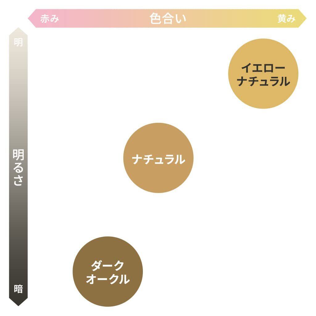 色選びの目安 : イエローナチュラルは色白さん用 ナチュラルは普通肌用 ダークオークルは小麦肌用