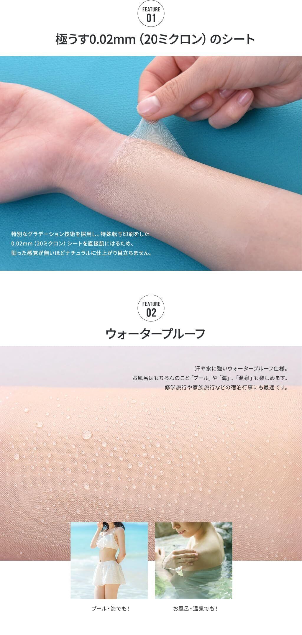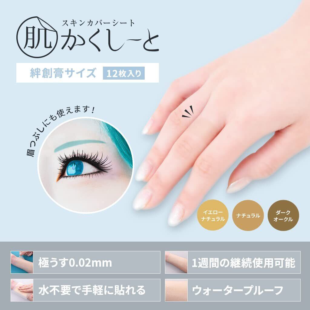 肌かくしーと<タトゥー・濃い傷あと・濃いあざ隠し用>【日本製】【極うす0.02mm】【水に強い】【水不要で貼れる】【パッチテスト済み】【ホルムアルデヒド試験クリア】 (絆創膏サイズ, イエローナチュラル)