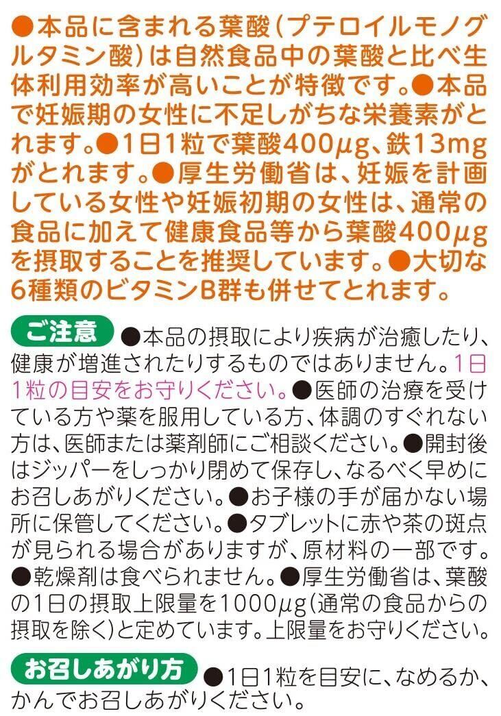 1日1粒で葉酸400μg、鉄13mgがとれます。