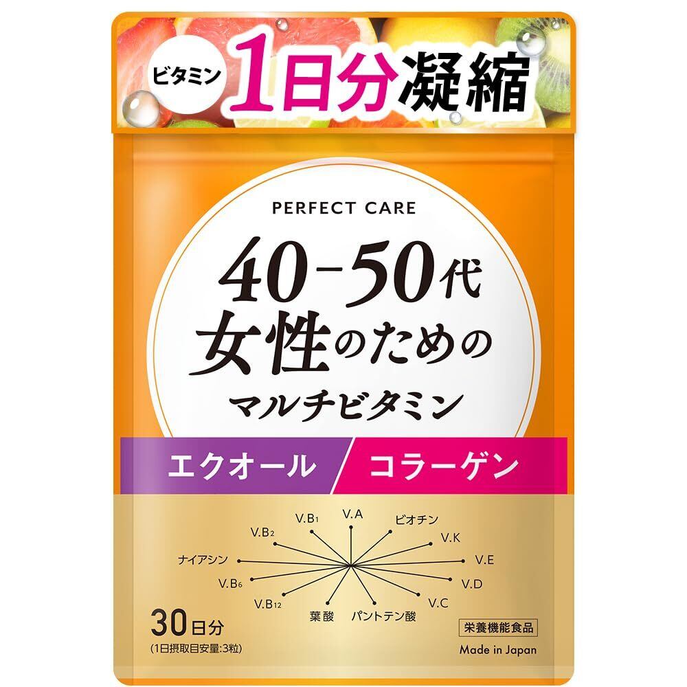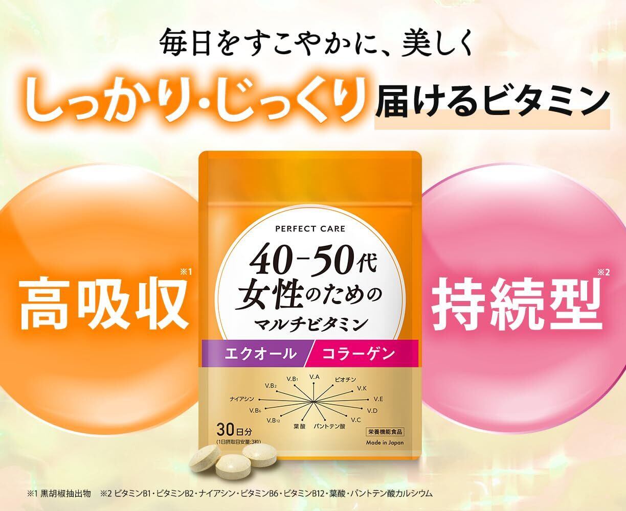 【栄養機能食品】40-50代女性のためのマルチビタミン 90粒 ビタミン エクオール コラーゲン 大豆イソフラボン ミネラル 鉄 女性 高吸収 持続型 女性のゆらぎ