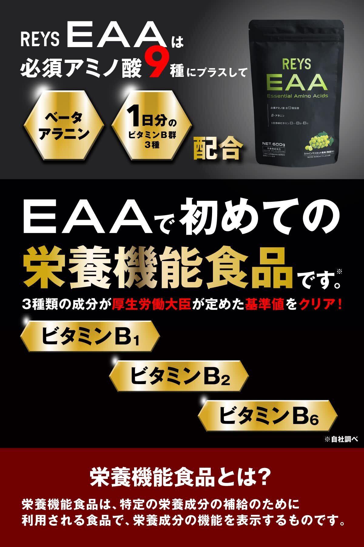 REYS レイズ EAA 山澤礼明 監修 必須アミノ酸 9種配合 600g 栄養機能食品 粉末 ベータアラニン 1日分のビタミンB群3種配合 国産 (シャインマスカット風味)